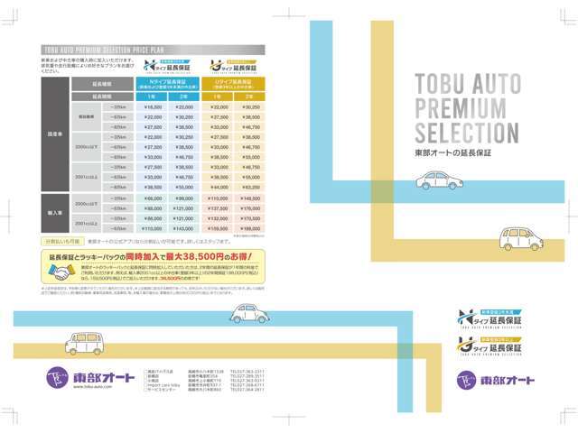 補足 | - | 購入後の6か月・走行無制限の保証を2年間・走行無制限に延長いたします。 | ガラスボディーコーティング(耐久期間5年) |