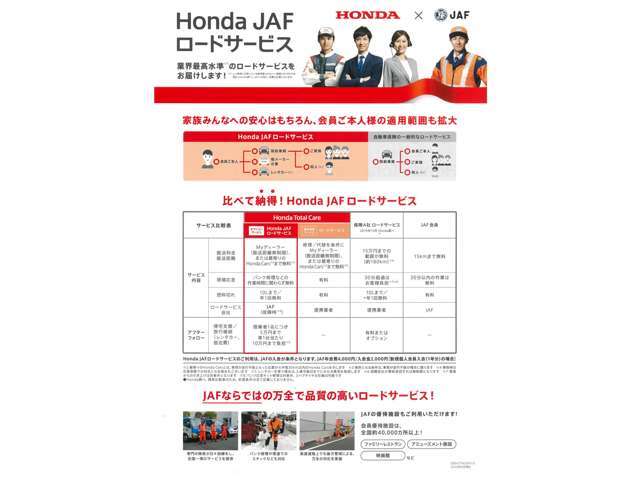 補足 | - | - | 万が一の時の安心、JAFにご入会頂けるプランです。パンク等で困った時、24時間・365日駆けつけてくれます。 |