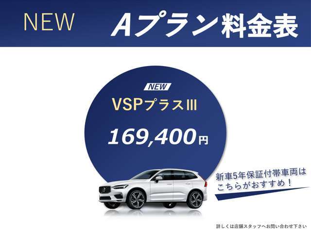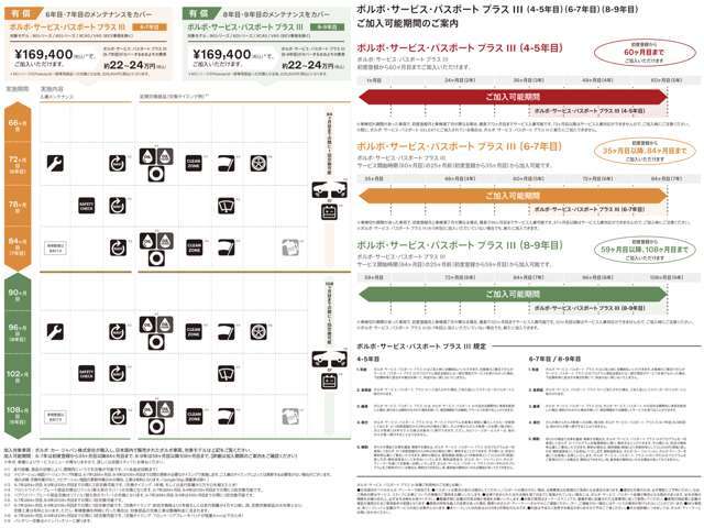 補足 | - | 60シリーズのPolestarは除く 下記期間のSELEKT車輛対象 4-5年目:初度登録3ヶ月~60ヶ月目まで 6-7年目:初度登録35ヶ月目以降84ヶ月目まで 8-9年目:初度登録59ヶ月目以降108ヶ月目まで 詳細価格169,400 |
