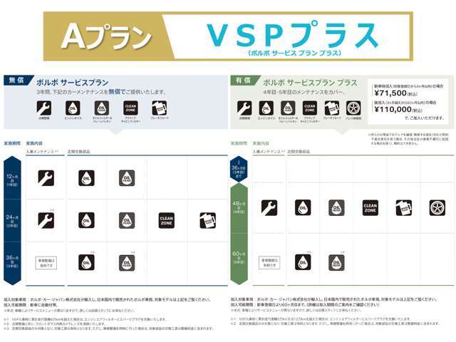 プラン名 | 基本プラン | Aプラン ●ボルボサービスプラン プラス |