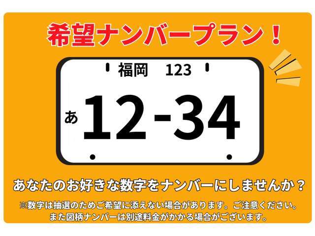 補足 | - | ナンバープレートの数字をお好きな数字にしませんか?※数字は抽選のためご希望に添えない場合がございます。また図柄ナンバーは別途料金が発生する場合がございます。ご注意ください。 |