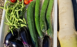 今日は小松菜を追加で収穫。ちょっと葉が硬い感じがするなぁ。 章姫のランナーをポットに受ける。 こっちはとちおとめ。木陰において直射を避ける。 つるおろし栽培しているキュウリ。下の方は収穫が終わったら葉を落として、蔓を引っ張り下ろし、支柱の高さと蔓の先端を合わせる。 ミニトマトはきれいに青い実が揃ってきた。このままいけば房取りできるか。 赤い実はギリギリまで収穫せず完熟を目指す。 緑も何もない、道具箱兼用のステップの上をイモムシが歩いて行く。どこへ行くのやら。とりあえず葉っぱは食べそうにないので、…