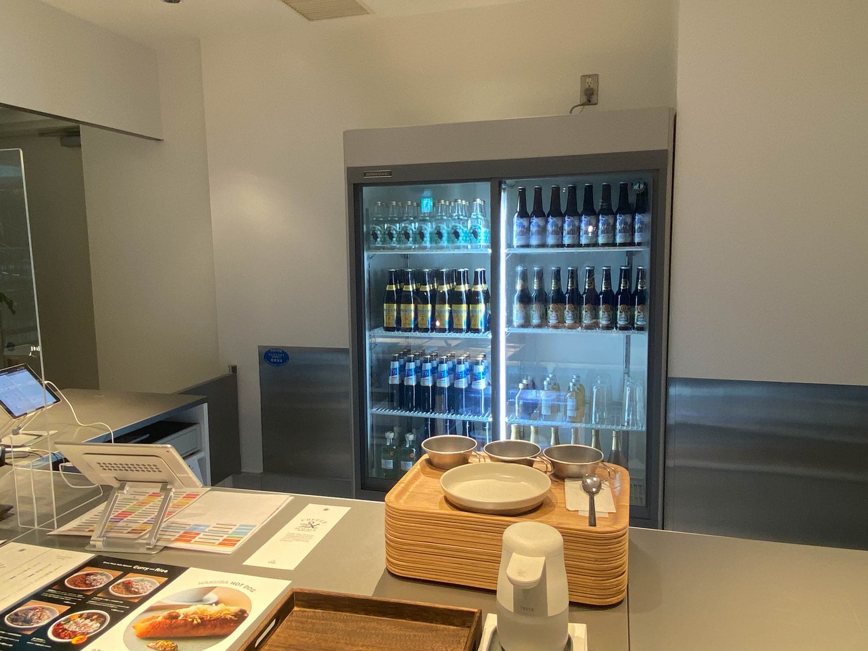 併設されたカフェでは、フードロス問題の解決に向け北海道経産牛を使用した「国産牛のビーフカレー」(1518)や、グルテンフリーの「豆野菜カレー」(1408)などのフードメニューを提供。また、ドリンクメニューとして、日本各地にある茶園で主に日本茶として栽培されている品種に酸化発酵などの加工を施し、紅茶の茶葉にした「和紅茶」を用いた「都城茶」(726)や「マルヒ製茶」(726)などをラインナップする。なおカフェは平日限定でコワーキングスペースとしても開放。90分1650(いずれも税込)で利用することが出来る。