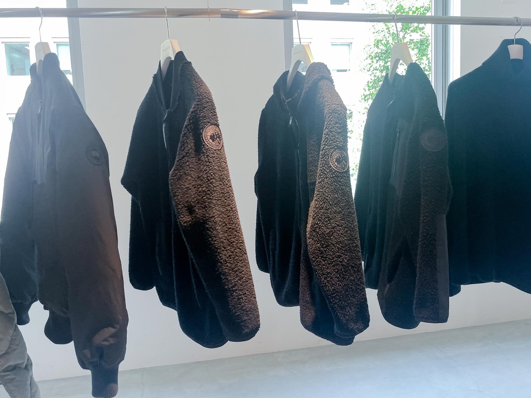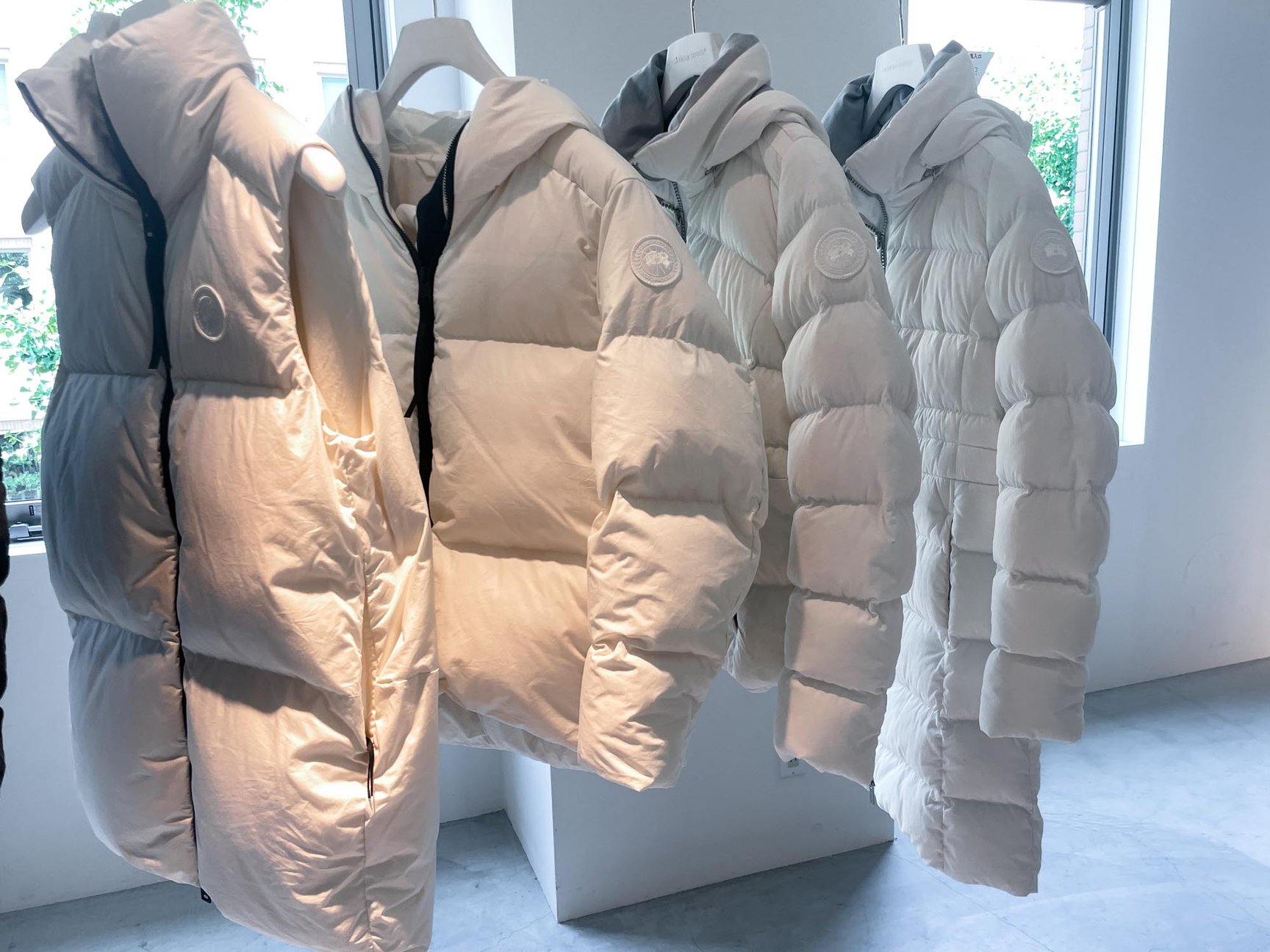 「カナダグース(CANADA GOOSE)」は、北極圏の地図が描かれた左肩の「赤いワッペン」がトレードマークとして知られているが、メインの購買層となる30~40代の女性や、40~50代の男性から「ロゴが目立たない落ち着いたアイテム」を求める声が多かったことから2023年秋冬シーズンにボディと同色のワッペンを施したアイテムを増やした。カナダグースでは、より都会に馴染むようにデザインされたブラックレーベル(通称:ブラックディスク)と呼ばれる限定ラインを以前から展開しており、同ラインに付けられているモノクロのワッペンや希少性が人気を博していた背景がある。ブランドの認知度が上がったことで、街中で“赤ワッペン被り”が起こってしまうことから、特別性を求める傾向が強くなり、一部アイテムにボディと同トーンのワッペンを施したところ顧客から好評だったという。2023年秋冬シーズンは、ダウンやフリースなどのアイテムで、カーキやホワイト、ネイビー、ブラックといったカラーの同色ワッペンアイテムを展開する。