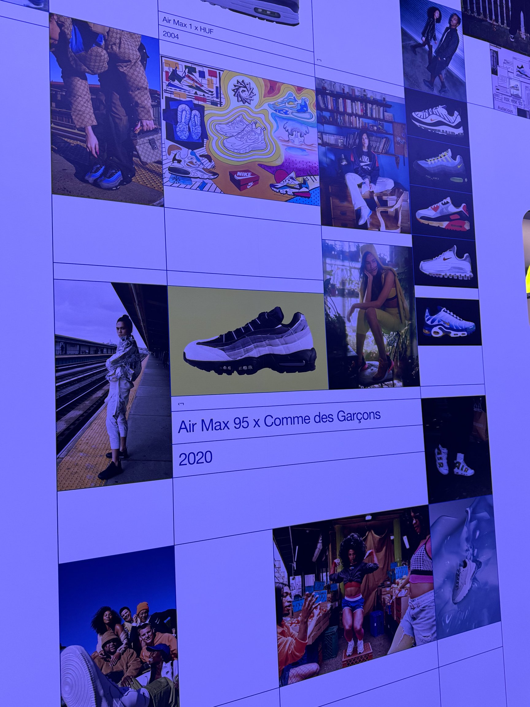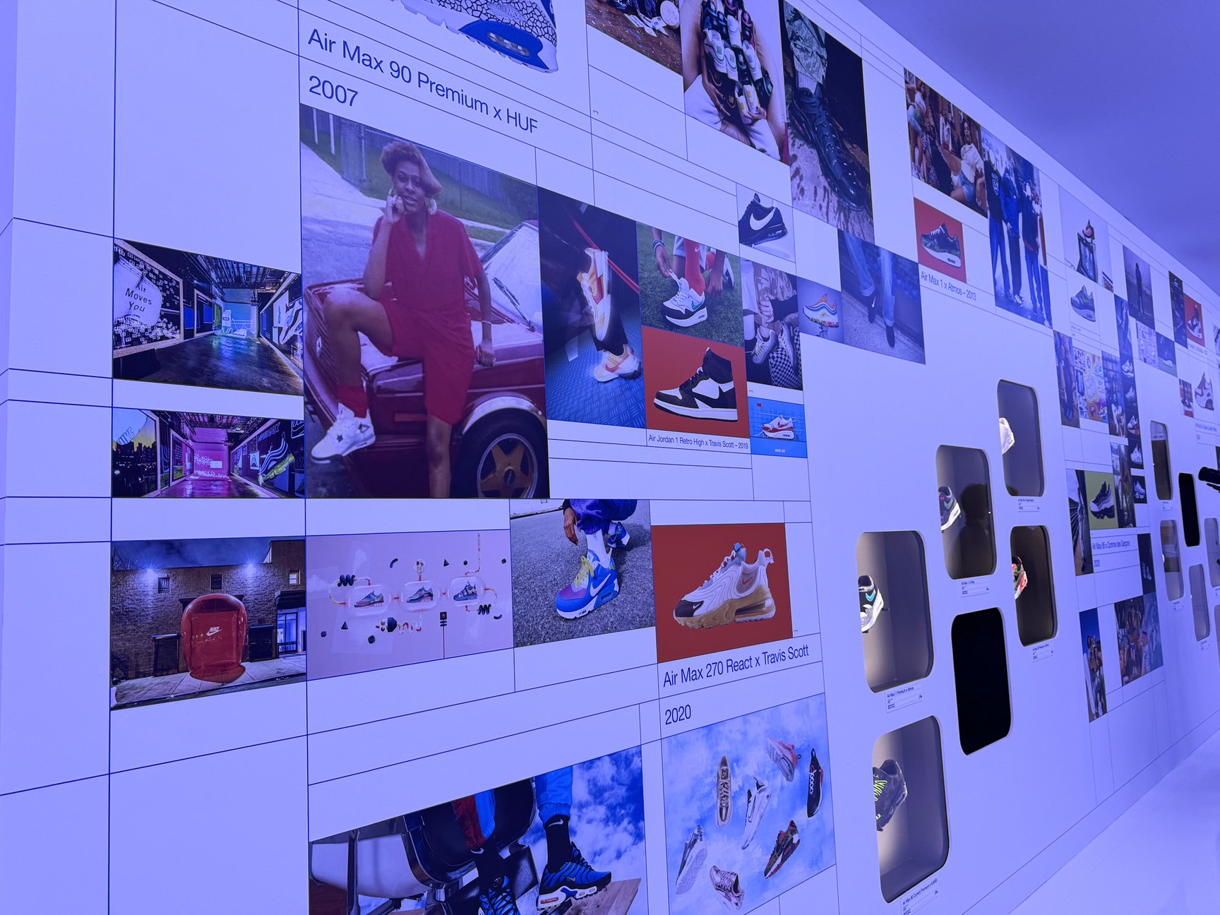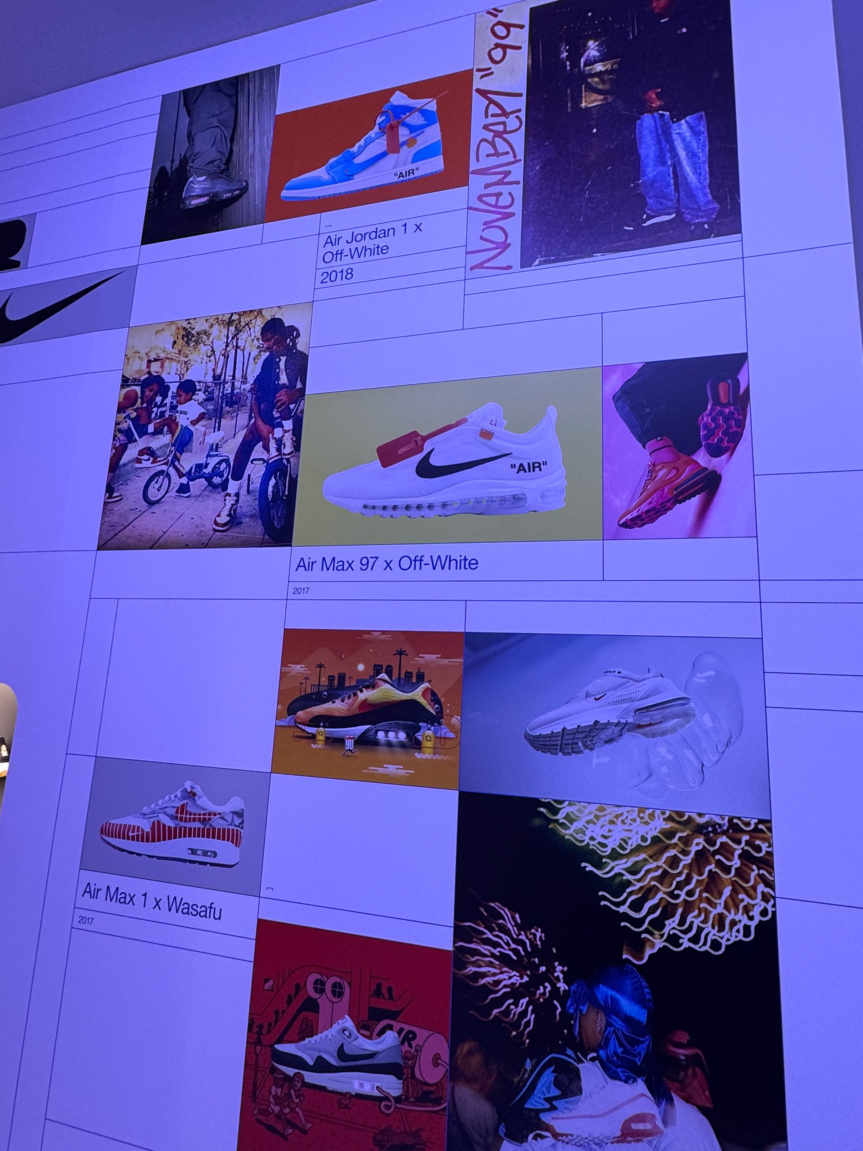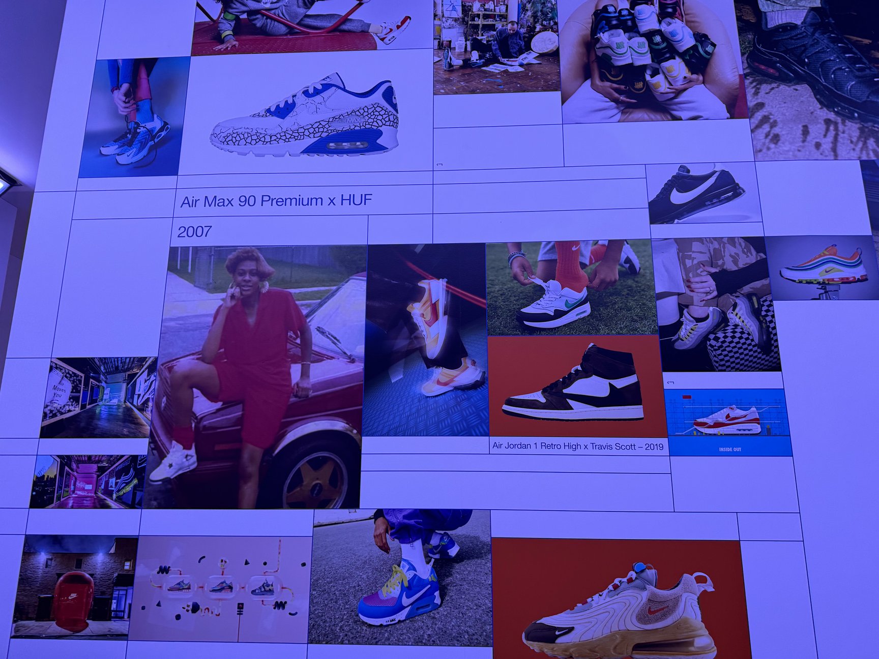 今回のイベント「NIKE ON AIR」では新製品の発表に加えて、Nike Airの歴史を紐解くエキジビションを開催。Nike Airを象徴する代表的な作品をコンベアを用いたインスタレーションで紹介したほか、「アトモス(atmos)」や「コム デ ギャルソン(COMME des GARÇONS)」「オフ-ホワイト c/o ヴァージル アブロー™(OFF-WHITE c/o VIRGIL ABLOH™)」といったパートナーと製作した数々のコラボレーション作品を一堂に並べ、来場した関係者の関心を引いた。