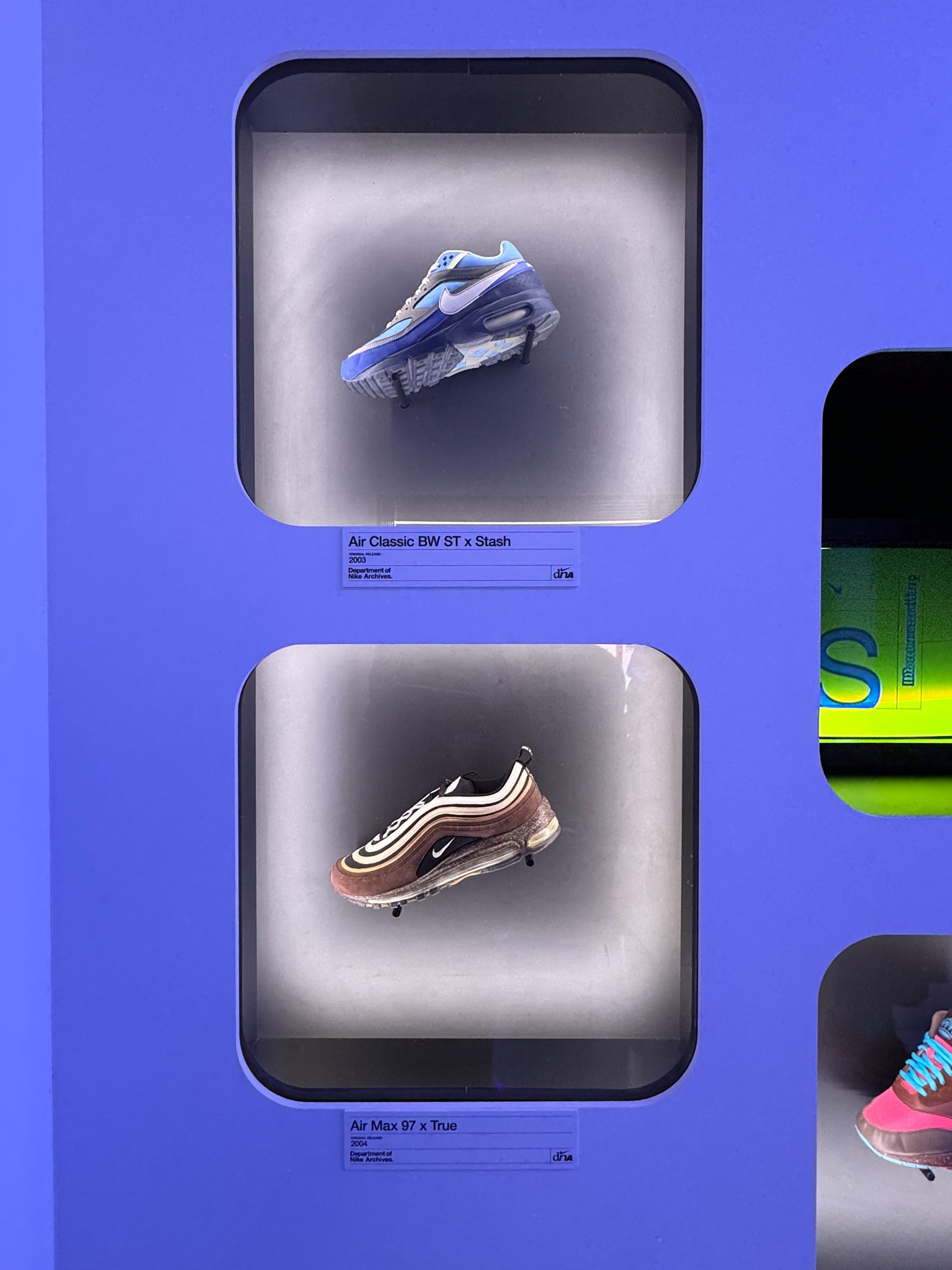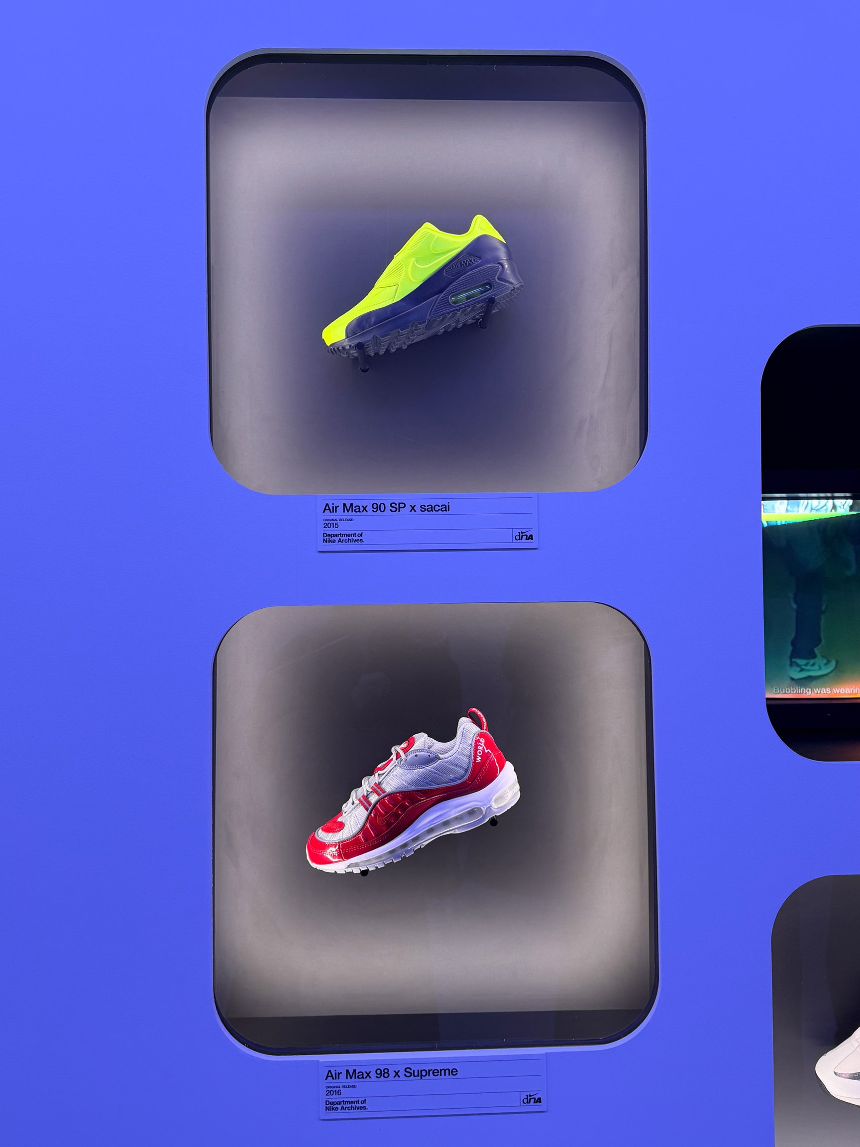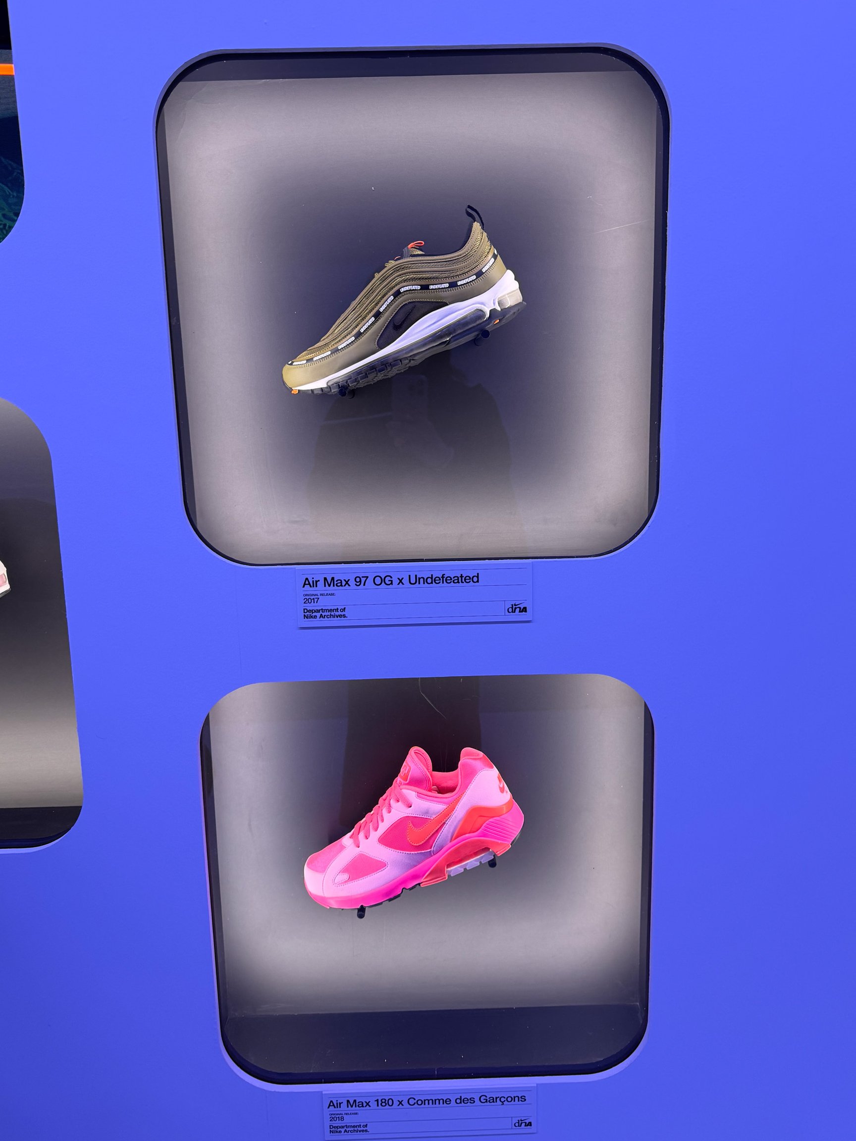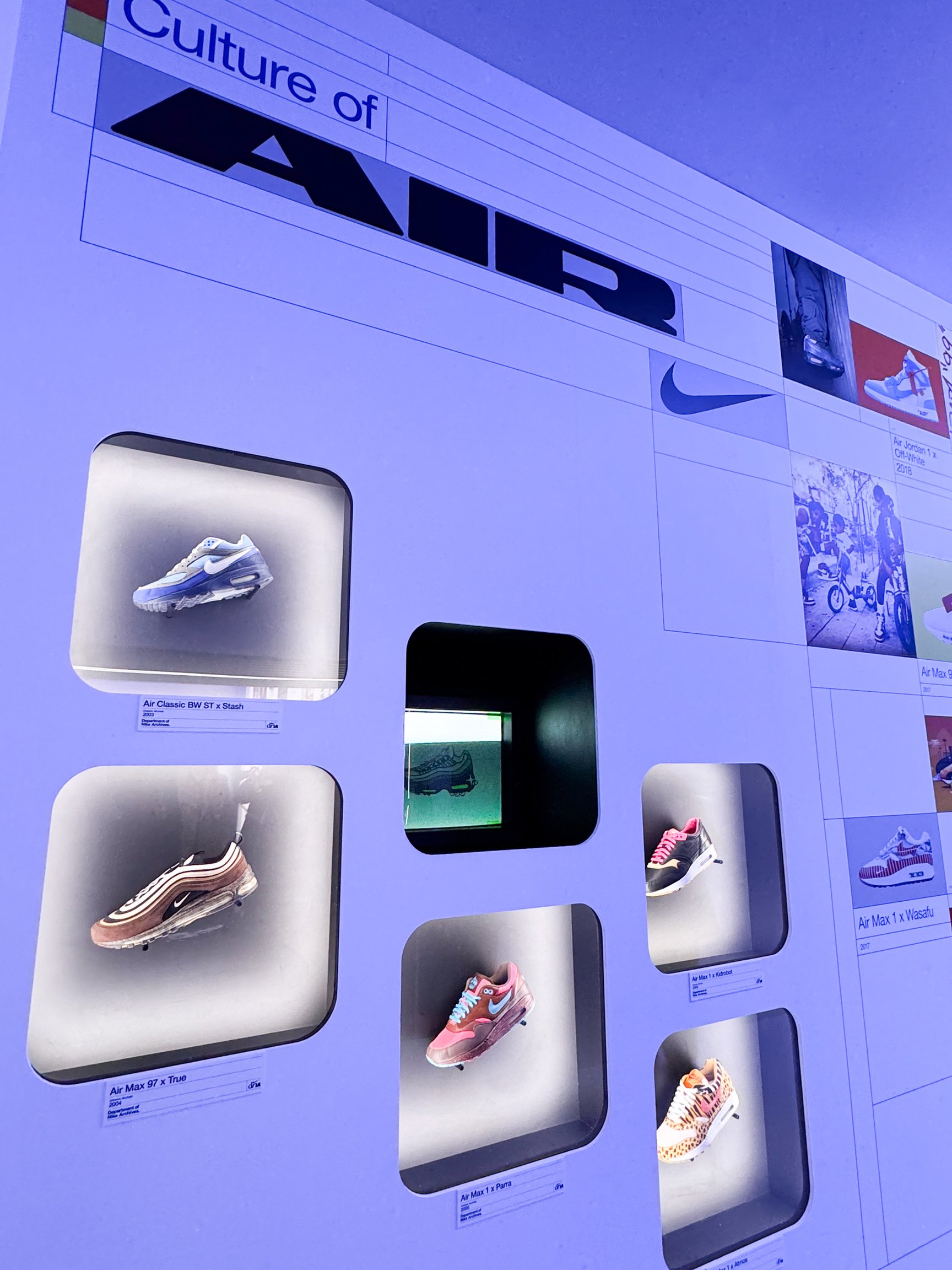 今回のイベント「NIKE ON AIR」では新製品の発表に加えて、Nike Airの歴史を紐解くエキジビションを開催。Nike Airを象徴する代表的な作品をコンベアを用いたインスタレーションで紹介したほか、「アトモス(atmos)」や「コム デ ギャルソン(COMME des GARÇONS)」「オフ-ホワイト c/o ヴァージル アブロー™(OFF-WHITE c/o VIRGIL ABLOH™)」といったパートナーと製作した数々のコラボレーション作品を一堂に並べ、来場した関係者の関心を引いた。