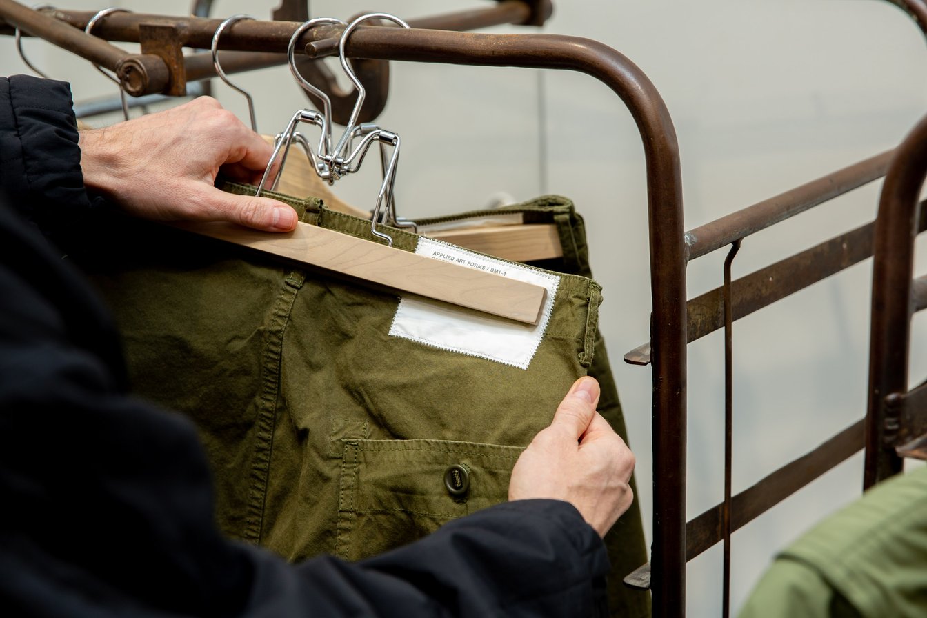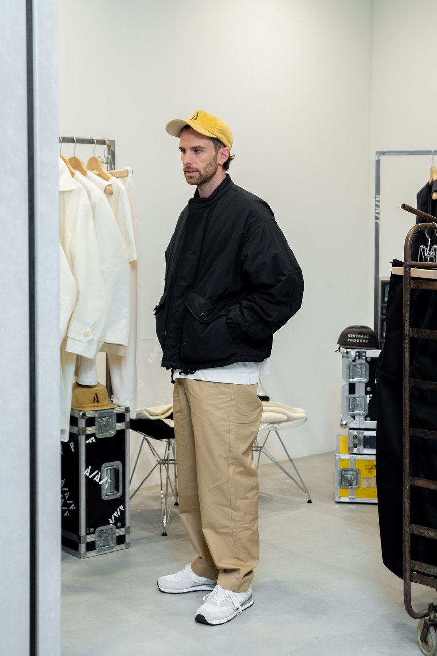 僕が好きで集めてきた米軍や英国軍の1940年代〜60年代のヴィンテージのミリタリーウェアがデザインソースになっている。オランダのデザインスタジオで、それらのアーカイヴピースを研究し、自分たちなりに解釈してモノ作りをしているんだ。ヴィンテージのミリタリーウェアは何十年も前のデザインなのに、機能的に設計されていながら実用的かつ美しいシルエットで、既に完成されているのが素晴らしいよね。