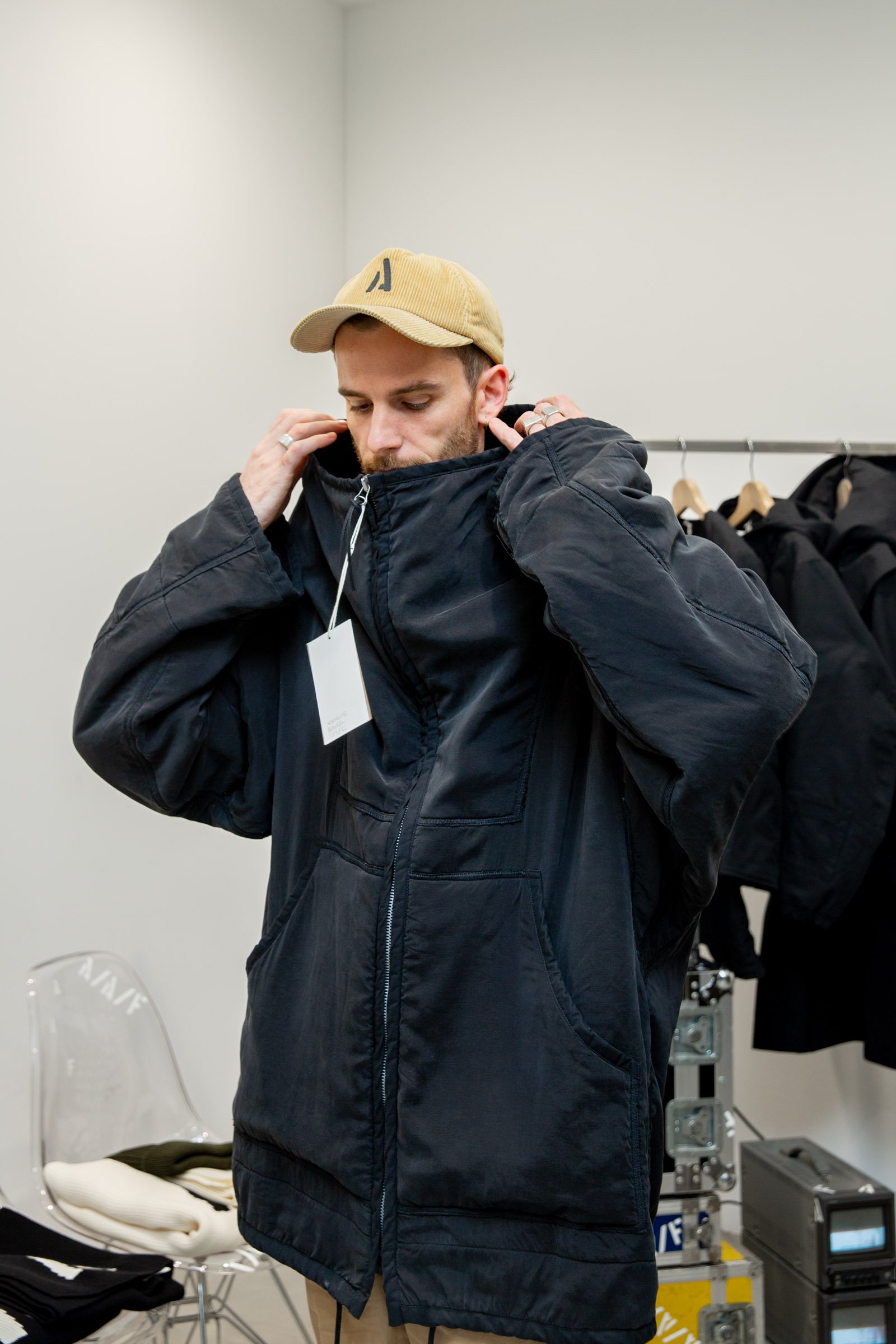ブランドのシグネチャーアイテムとして、パーカ/ライナーコート/ライナーベスト/フードといった単体でもレイヤードしても使えるマルチスタイルのアウターの組み合わせ方を提案している。これを「モジュラーパーカシステム」と呼んでいるんだけど、用途や天候に応じて、レイヤーを足したり差し引いたり調節できるんだ。個々での販売だけど、全部揃えてもいいし、買い足すこともできる。