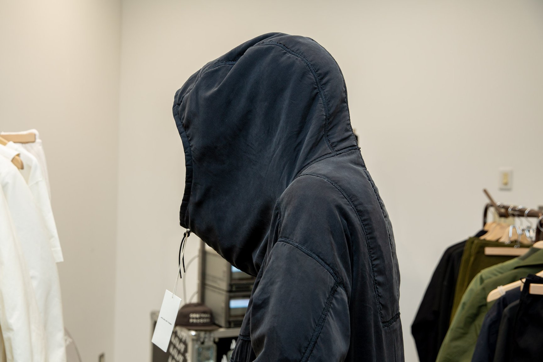 オーバーサイズのビックフードで、裏地は日本製の柔らかいコットンとウールのパイル地。着てみるとわかるんだけど、本当に包まれているような着心地なんだ。肌触りも良くてこのまま寝ちゃいそうなくらいな気持ち良さだよ。