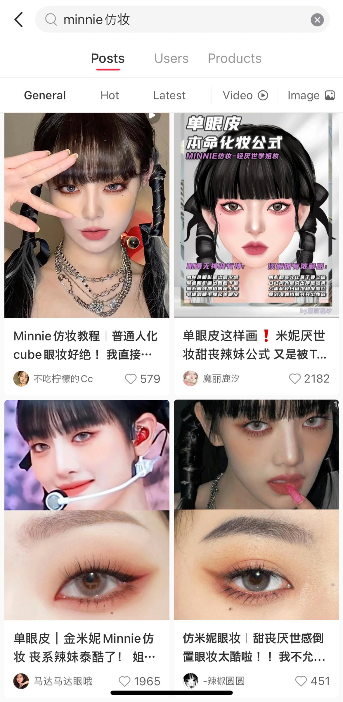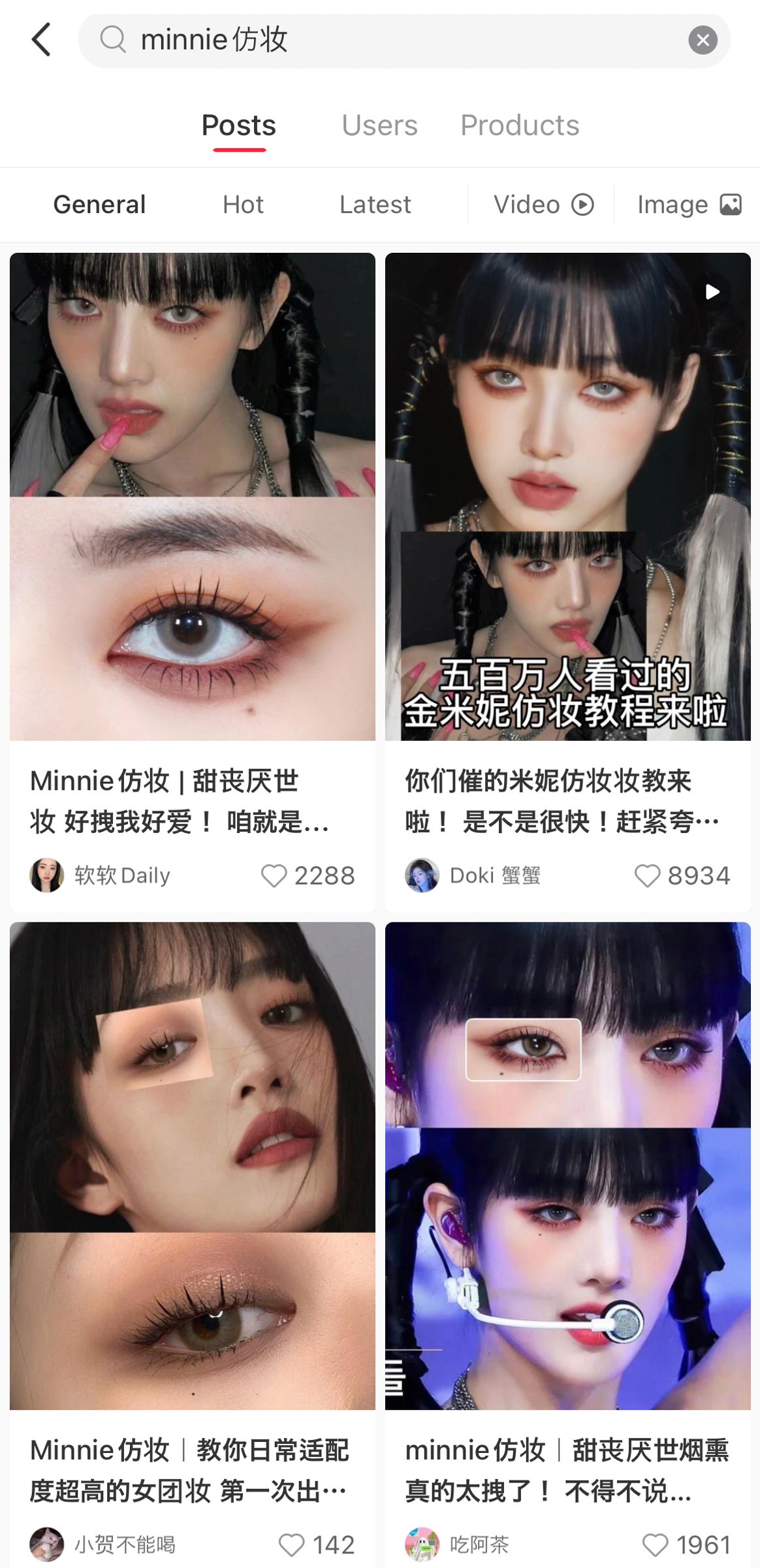 中国女子の間でもK-POPアイドルは注目の的で、BLACKPINKや、iveウォニョン、aespaウィンターらが特に真似メイクの対象となっています。そして最近人気が急上昇しているのが、新曲「TOMBOY」が話題になった(G)-IDLEのミンニ(Minnie)。ダークなブラウンカラーを用いた囲み目メイクが中国でヒット中。さらに、ヘアスタイルも合わせてまで完コピする人が絶えません。