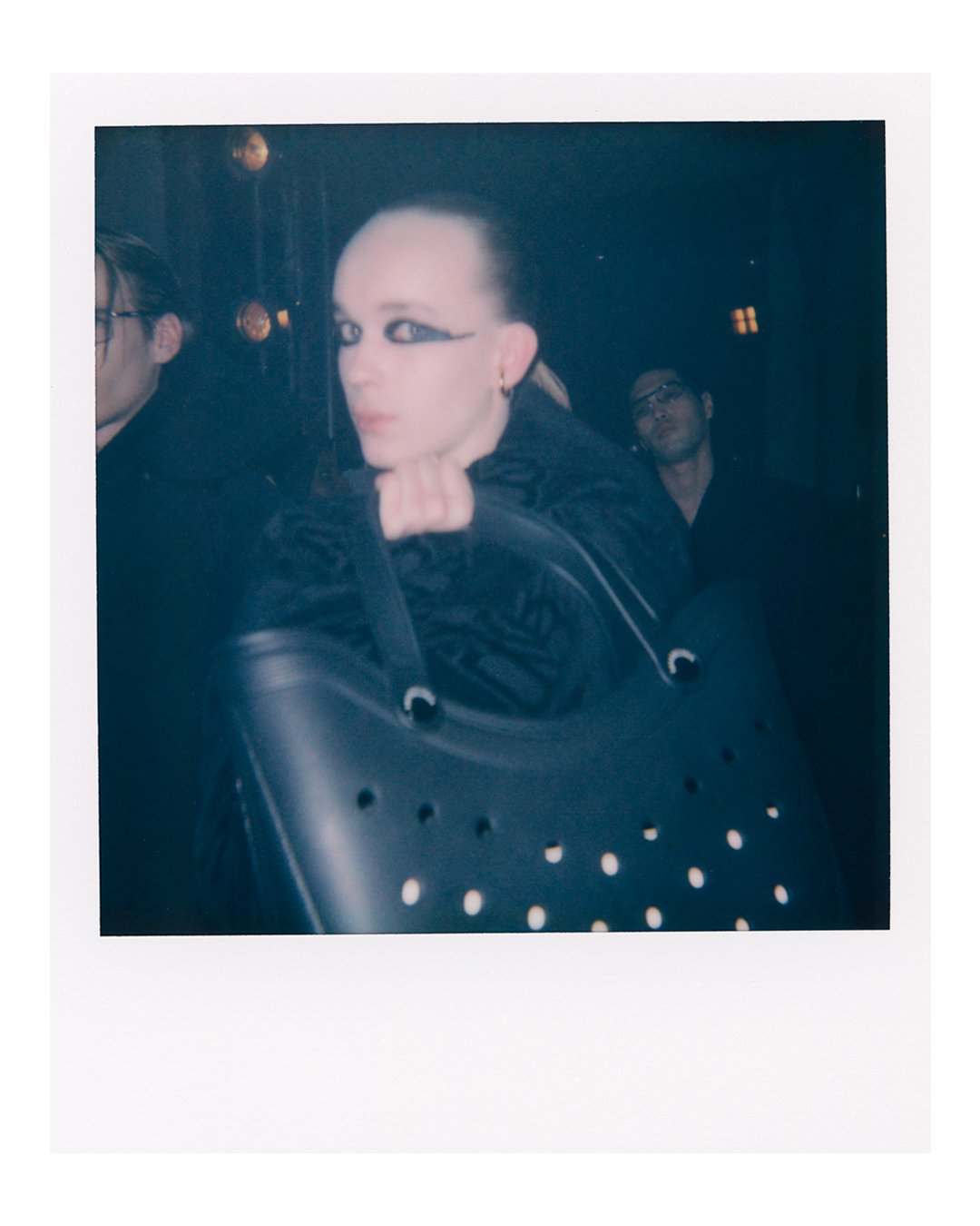 定番の「Balenciaga Classic」は、90年代のバックル付きバッグにインスピレーションを得て再解釈。フェイクレザーを編み上げてメタルチェーンと組み合わせた「Metro Bag」、無数のハトメが施されたストラップが目を引くストーンウォッシュレザーのバッグ「Emo Bag」など、アクセサリーにはパンク要素が加わった。