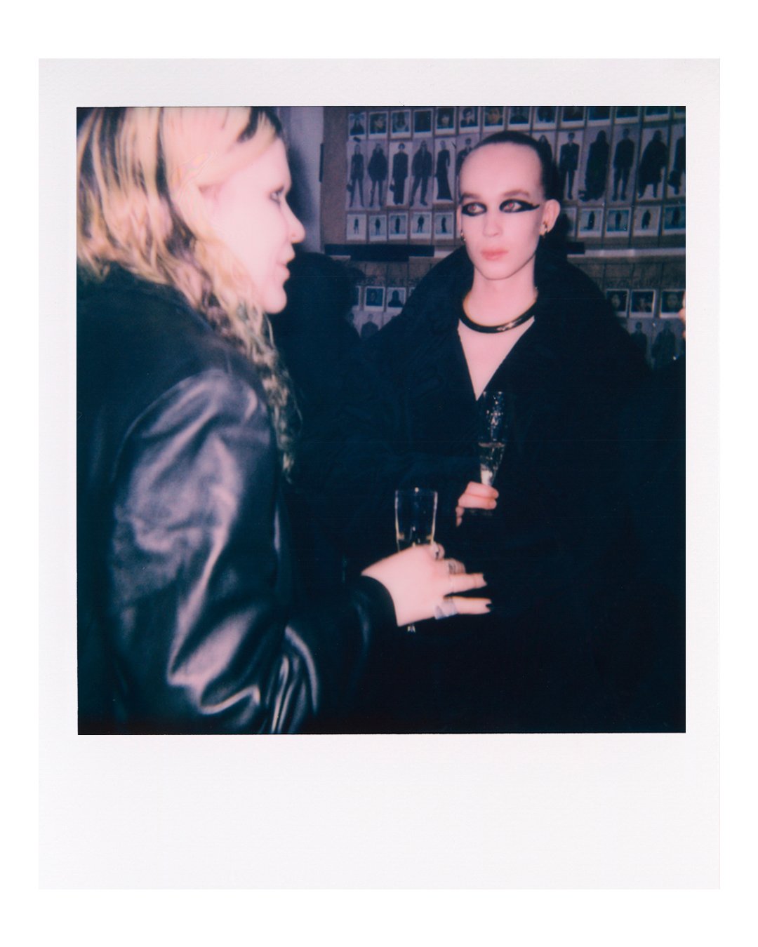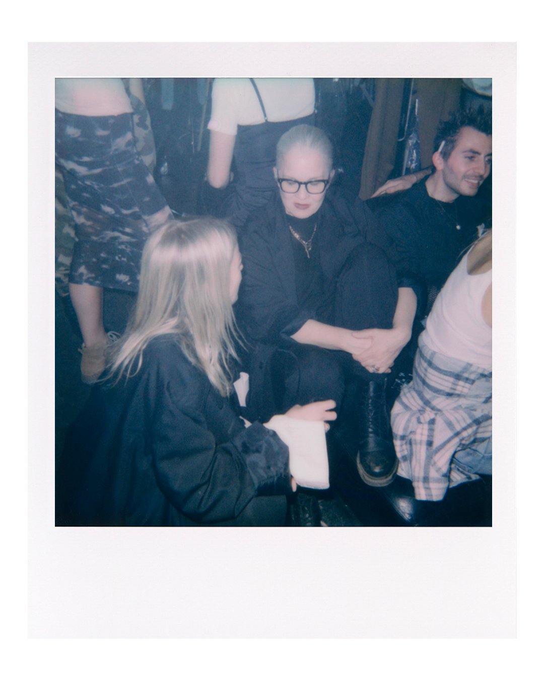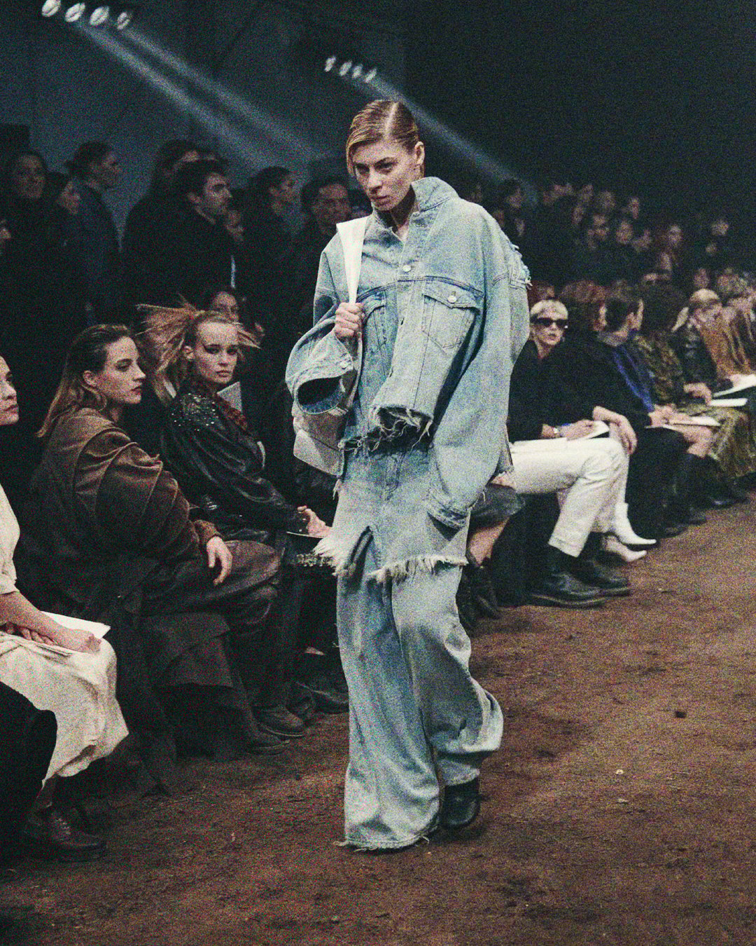 ランウェイの映像の後に流れたのは、バックステージでシャンパンを傾けるデムナとモデルたちの姿や、ジャーナリストのDiane Pernetなどがコレクションを褒め称える様子。シュールな映像の中に、古き良き時代のポジティブさが眩しく映った。