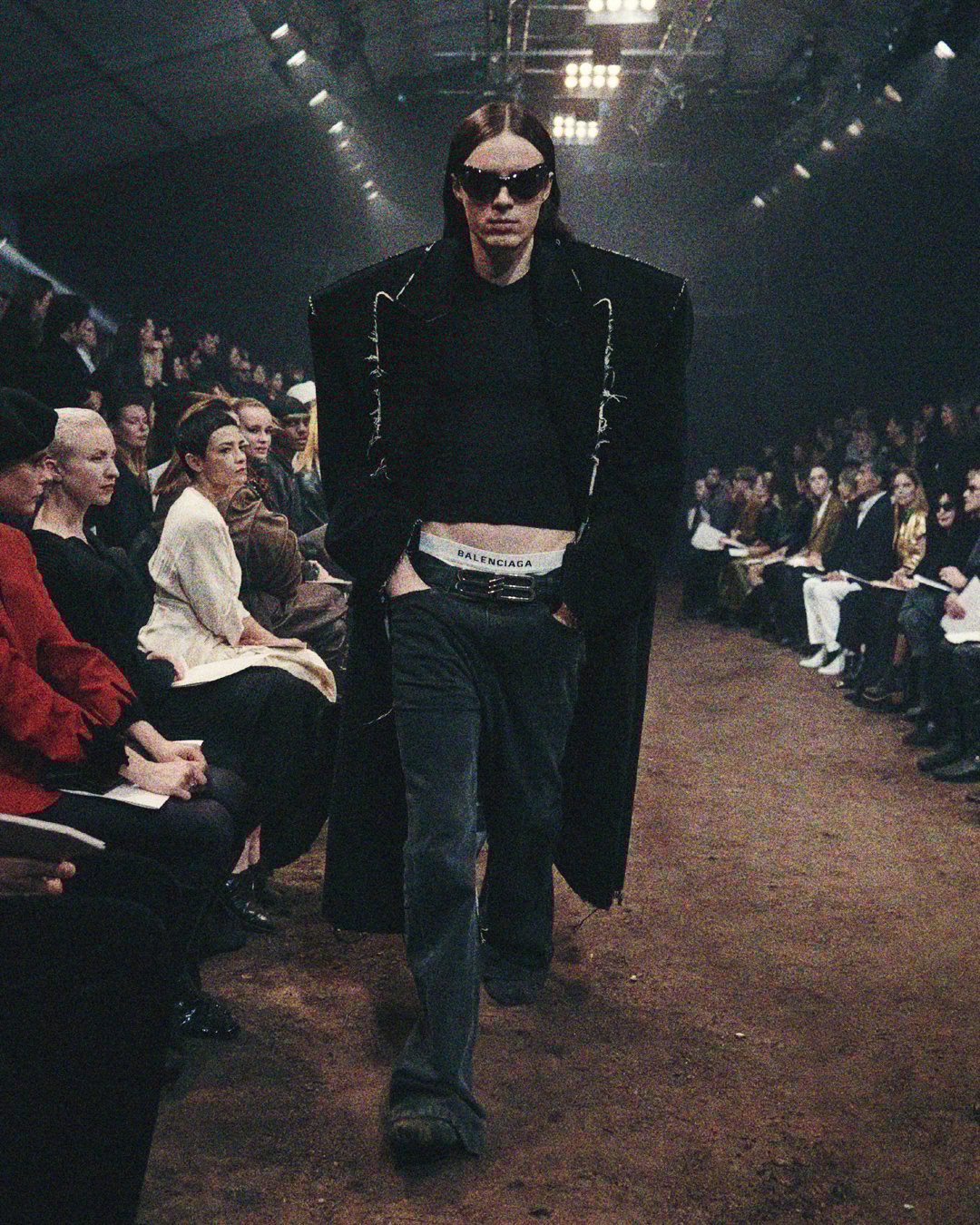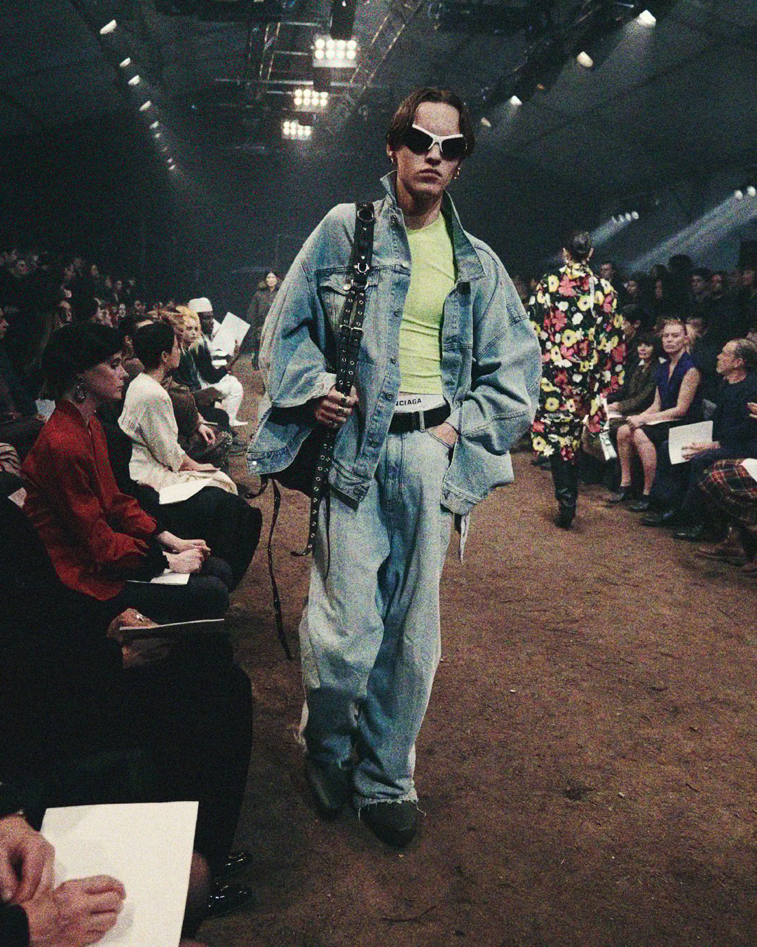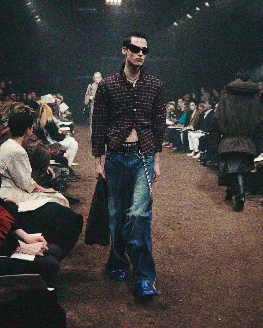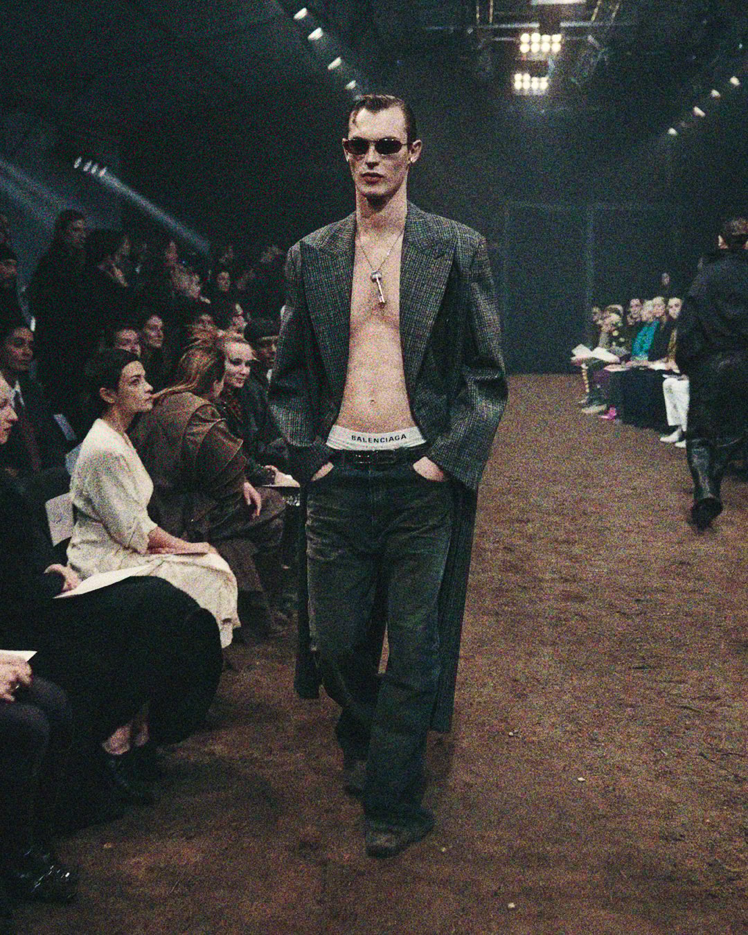 アーティスティックディレクターのデムナ(Demna)が着目したのは1990年代後半。創業者クリストバル・バレンシアガの亡き後、メゾンが低迷し栄光が失われていた時代に息を吹き込むように、過去と現在を交錯させている。
