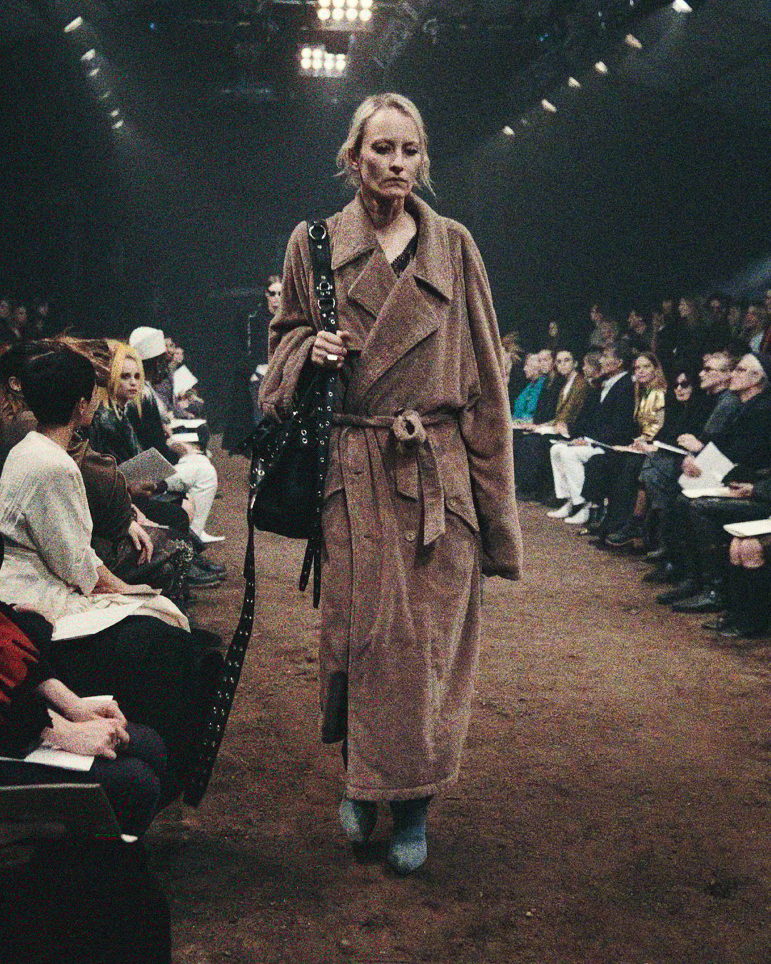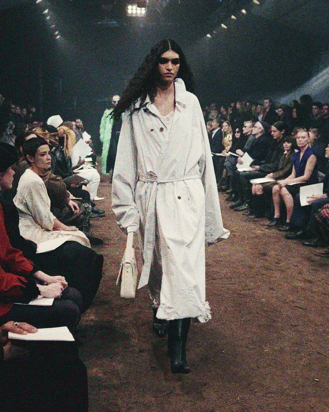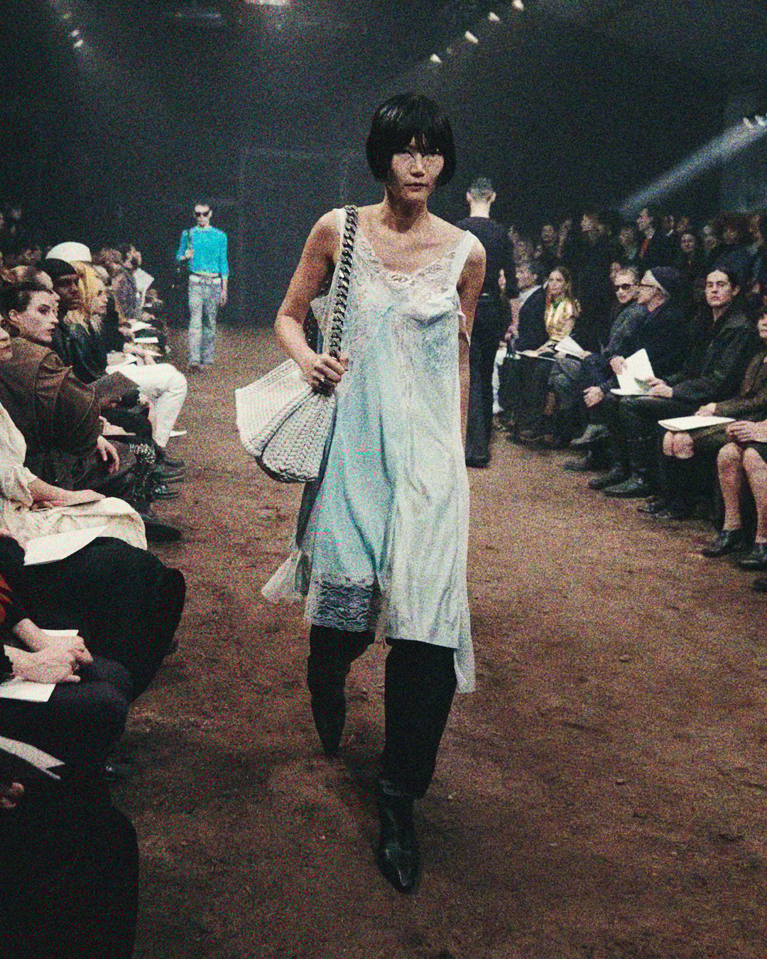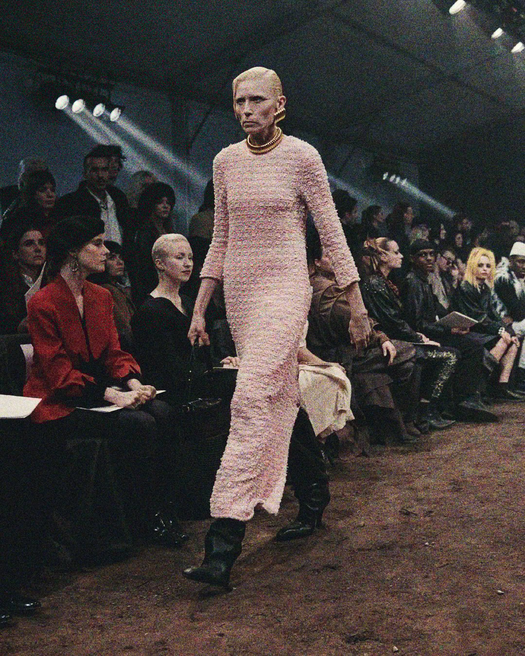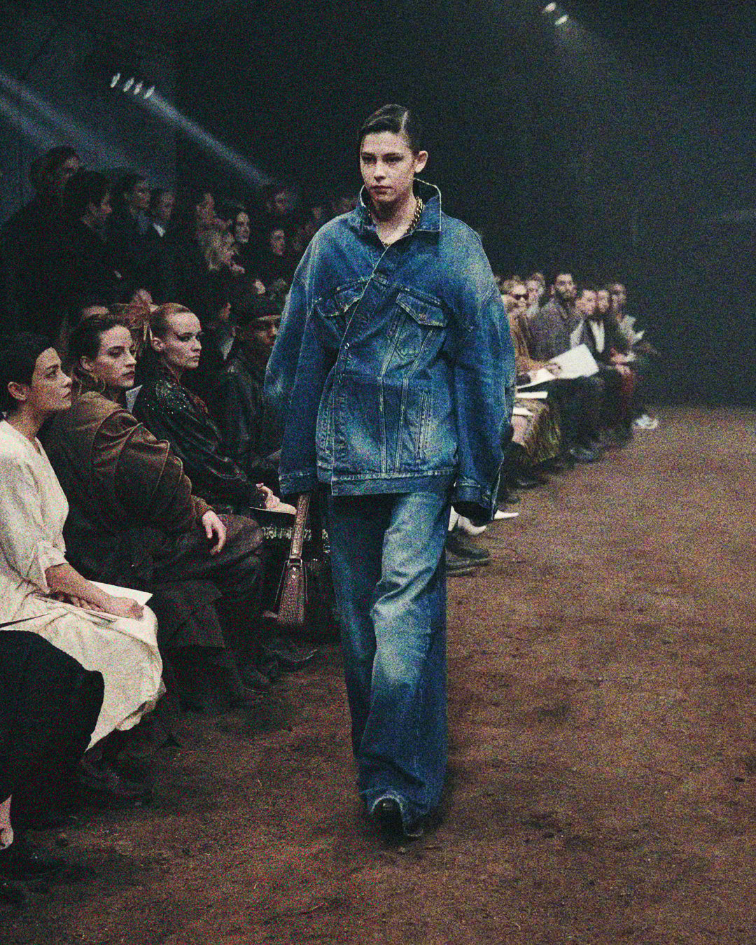 アーティスティックディレクターのデムナ(Demna)が着目したのは1990年代後半。創業者クリストバル・バレンシアガの亡き後、メゾンが低迷し栄光が失われていた時代に息を吹き込むように、過去と現在を交錯させている。