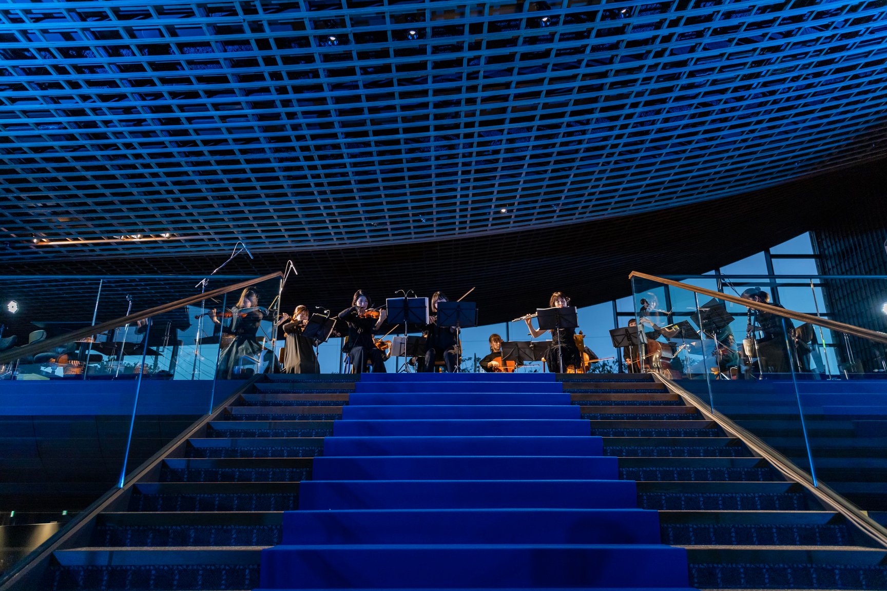 西巻:社内向けのイベントでは使ったことがありますけど、Aftermarketの方を招いてのイベントは初めてで。FASHIONSNAPさんをはじめ、「フィンガリン(PHINGERIN)」デザイナーの小林資幸さんやアーティストの長場雄さん、テレビディレクターの上出遼平さんや今回この企画のイメージヴィジュアルを撮影してくださった題府基之さんなど関係値のある33人のゲストを招待させて頂きました。やっぱり楽しんでもらいという気持ちが強かったので、会社の入口をコイン パーキング デリバリーさんのグラフィックで覆ったり、「ディリジェンスパーラー(DILIGENCE PARLOUR)」の越智康貴さんにお花を飾って頂いたり、オーケストラに演奏して頂いたり、ワインを250本用意したりと、結構な予算を使いましたね(笑)。
