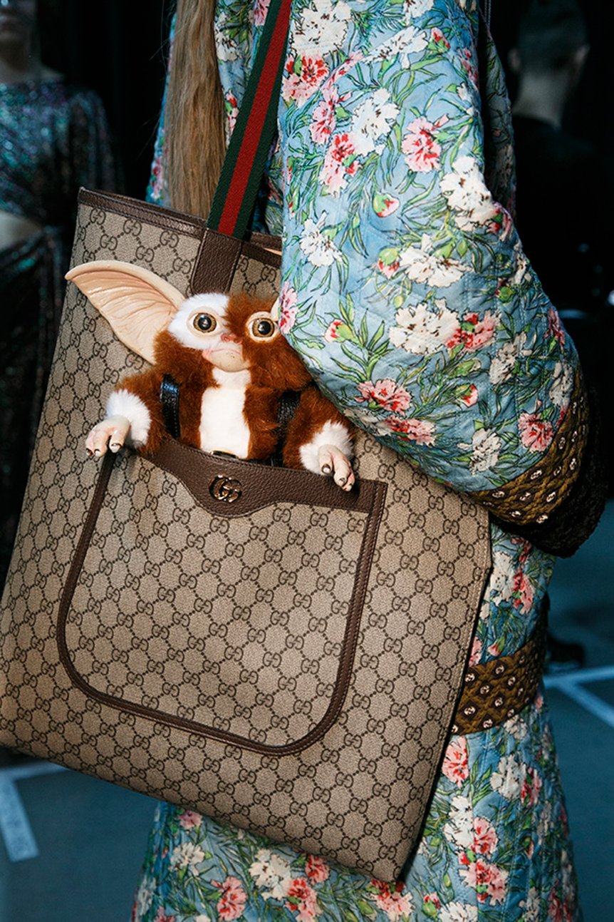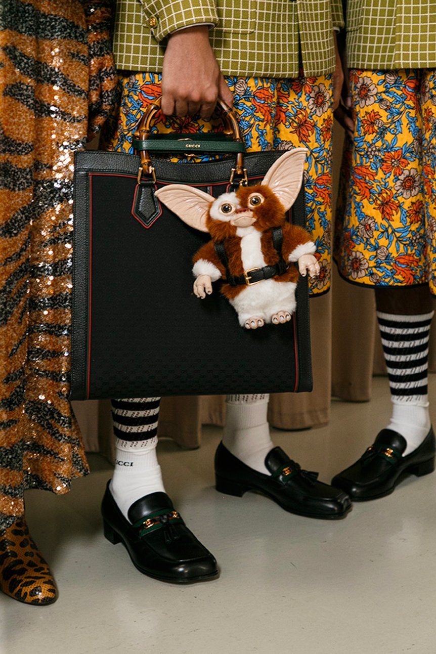 アレッサンドロが幼少期に見ていたという「グレムリン」のギズモが、バッグのポケットから顔を出したり、ドレスにプリントされていたり、アクセサリーなどで随所に登場した。