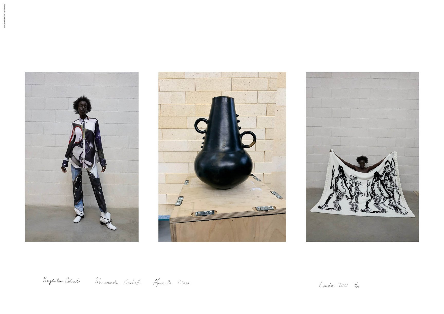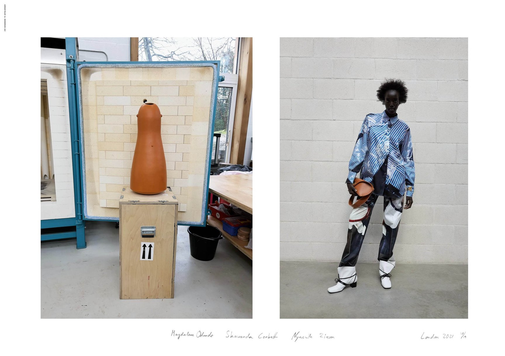 陶芸家であるマグダレンとは2017年にジョナサン自身がキュレーターとして携わった展覧会「Disobedient Bodies」をきっかけに親交を深め、体が不自由ながらも独創的な作品を生み出す彫刻家兼パフォーマンスアーティストのシャワンダはコロナ禍でのロックダウンの合間に行われた展覧会でその存在を知ることになった。両者共に体と物質の関係性や、器を物的な媒体とする概念を探究するアーティストという側面に魅かれてコラボレーションが実現したという。