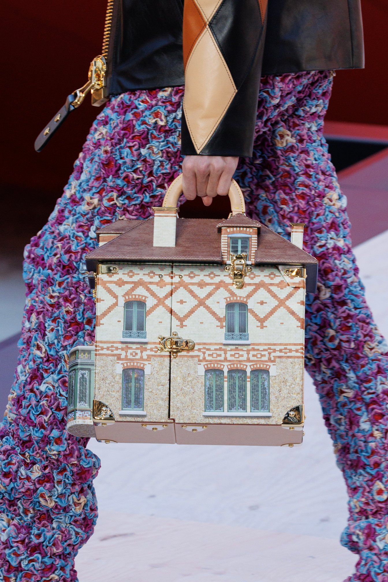 ショーの中盤で注目を浴びたのは、ドールハウスのようなデザインのバッグ。これは創業者ルイ・ヴィトンの邸宅を忠実に再現したもので、中はジュエリーケースのような仕様となっている。