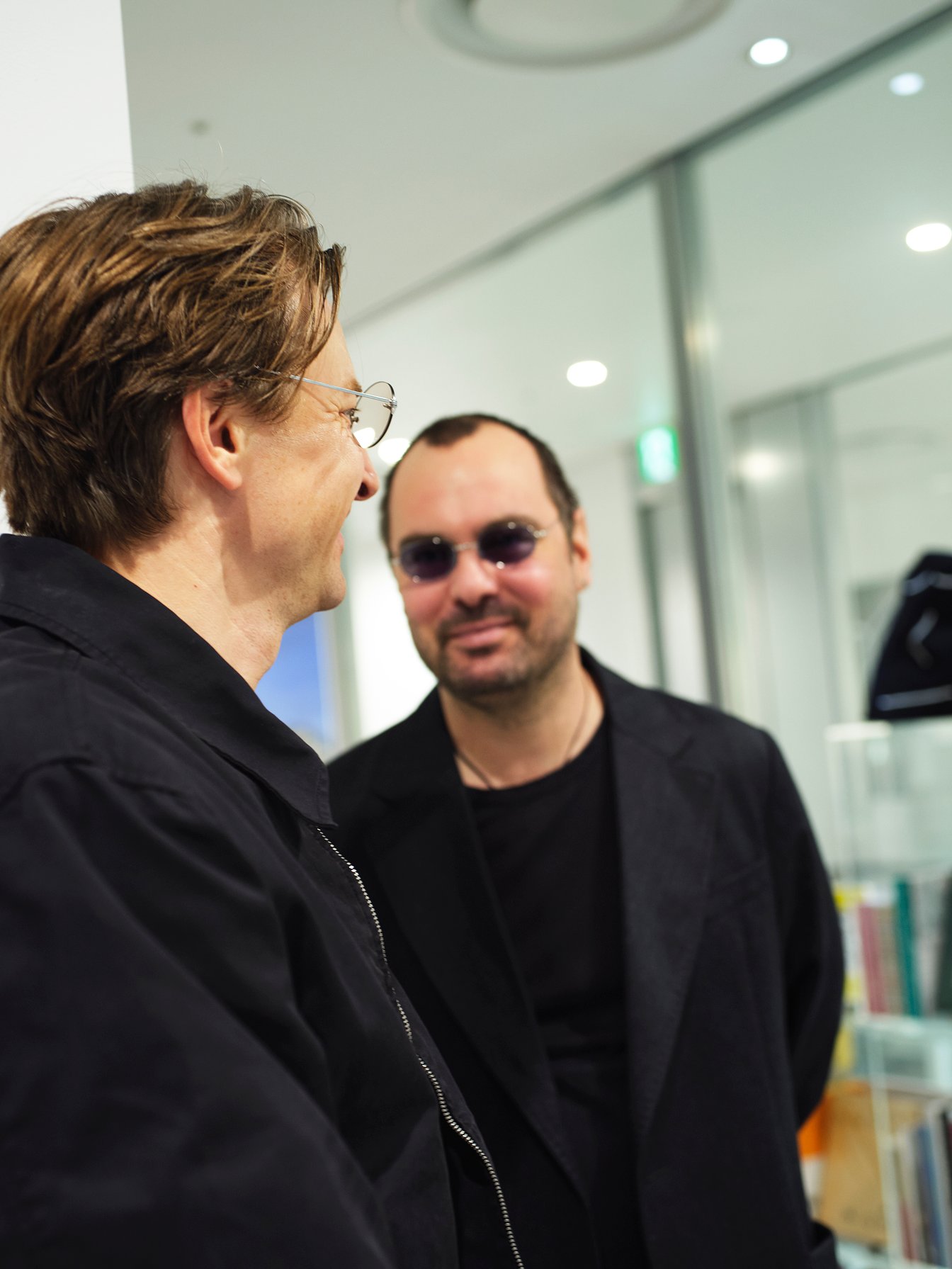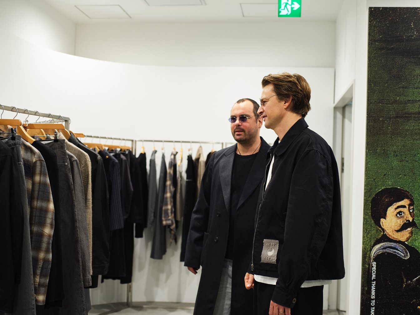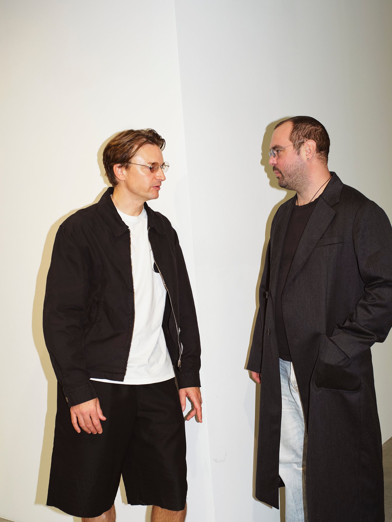 10月に開かれたDOVER STREET MARKET GINZAのオープンハウスに訪れた、共同経営者3人のうち2人、クリストファー・ニイン(Christopher Nying)とヨックム・ハリン(Jockum Hallin)。10代の頃にアイスホッケーを通じて出会ってからというものの、独学で着実にアワーレガシーにしかない世界観を広げていった。来年ブランド創設20周年を迎える2人は、この目まぐるしい時代に稀有な存在に思えてしまうほど、冷静かつ堅実なまなざしを過去にも今にも、そして未来にも向ける。