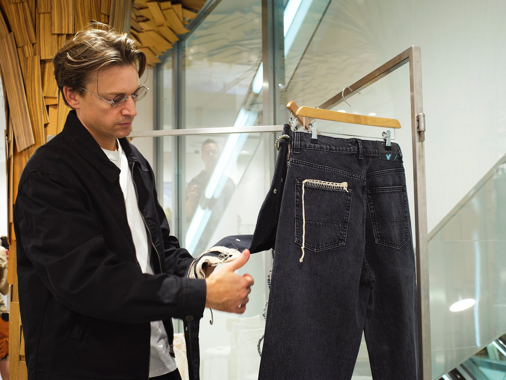 ヨックム・ハリン(以下 ハリン):そんな東京のタクシーカルチャーからインスピレーションを受け、メイン・ニュエとともにひとつずつハンドメイドのユニークピースを作りました。またメイン・ニュエが普段からリペアしたアイテムを販売していることから、同じコンセプトでブレザー、パンツ、デニムなどにレースを施したアップサイクルのアイテムも展開しました。