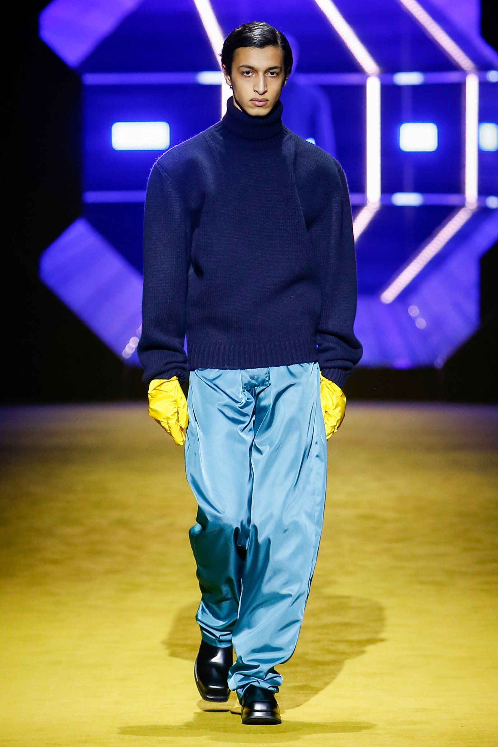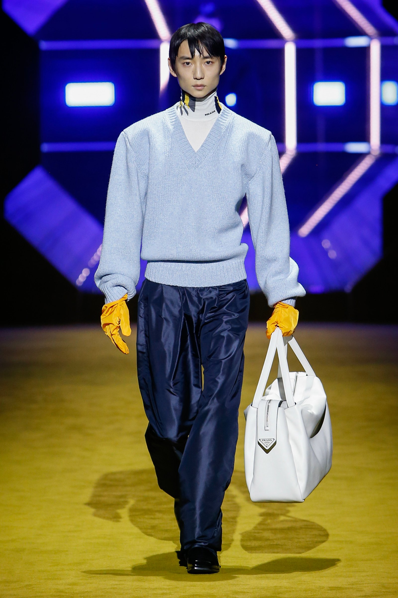 「プラダ(PRADA)」がミラノでランウェイショーを開催し、ラフ・シモンズ(Raf Simons)とミウッチャ・プラダ(Miuccia Prada)による2022年秋冬メンズコレクションを発表した。ファーストルックのカイル・マクラクラン、ラストルックのジェフ・ゴールドブラムといった10人の俳優も登場。それぞれの存在感と大胆なシルエットが、「演劇や映画を現実に映す鏡」とする今回のランウェイを引き立てた。