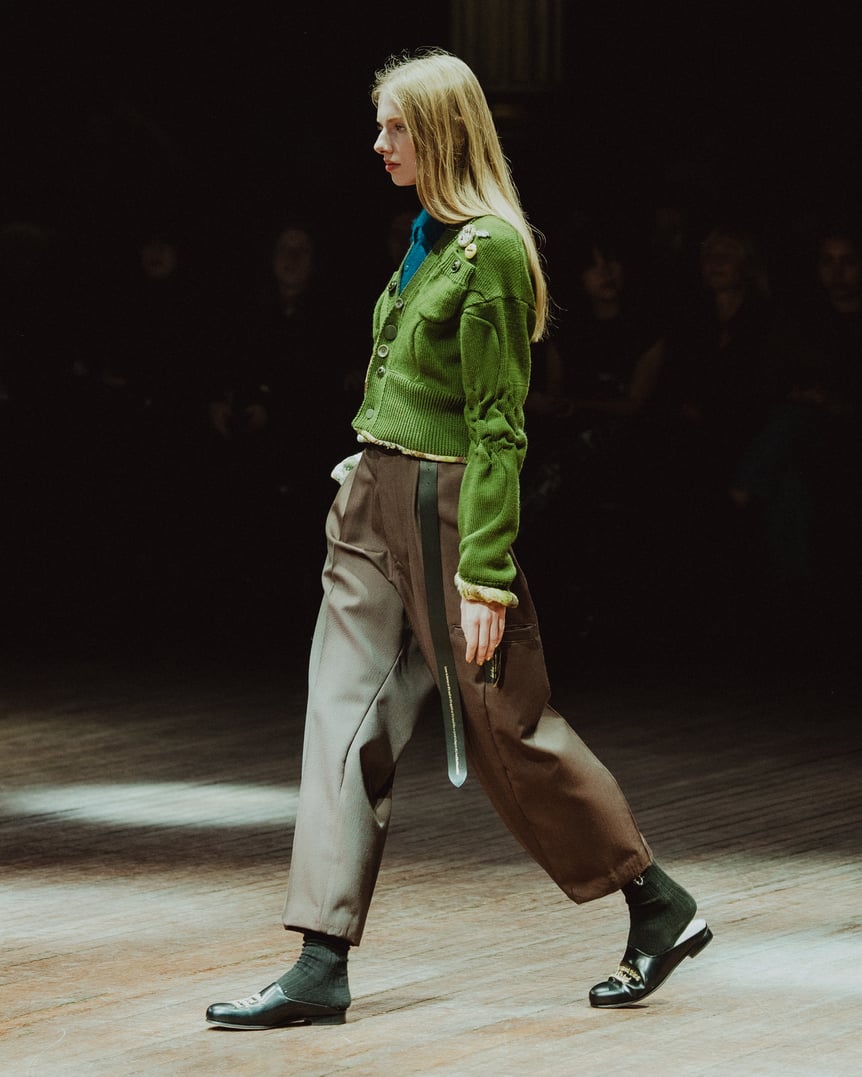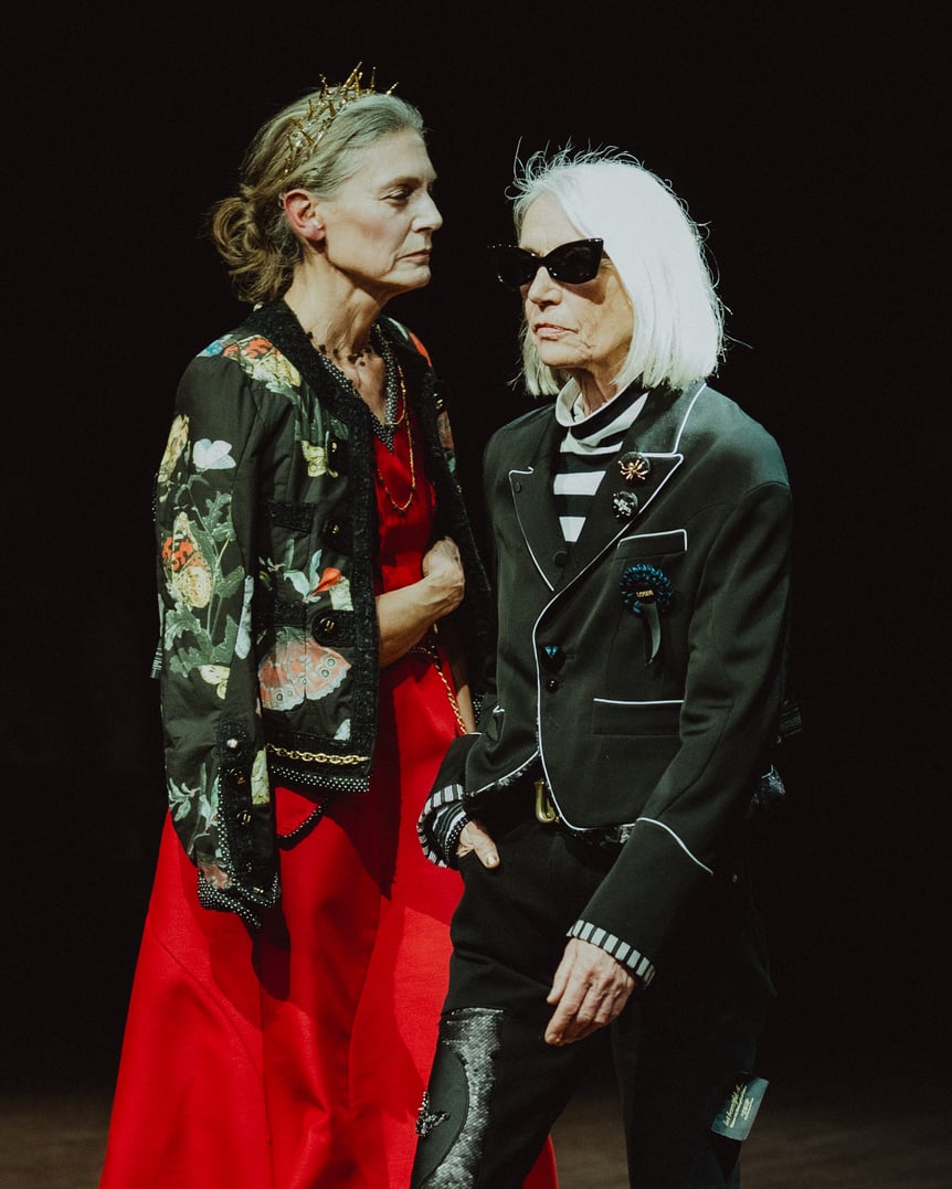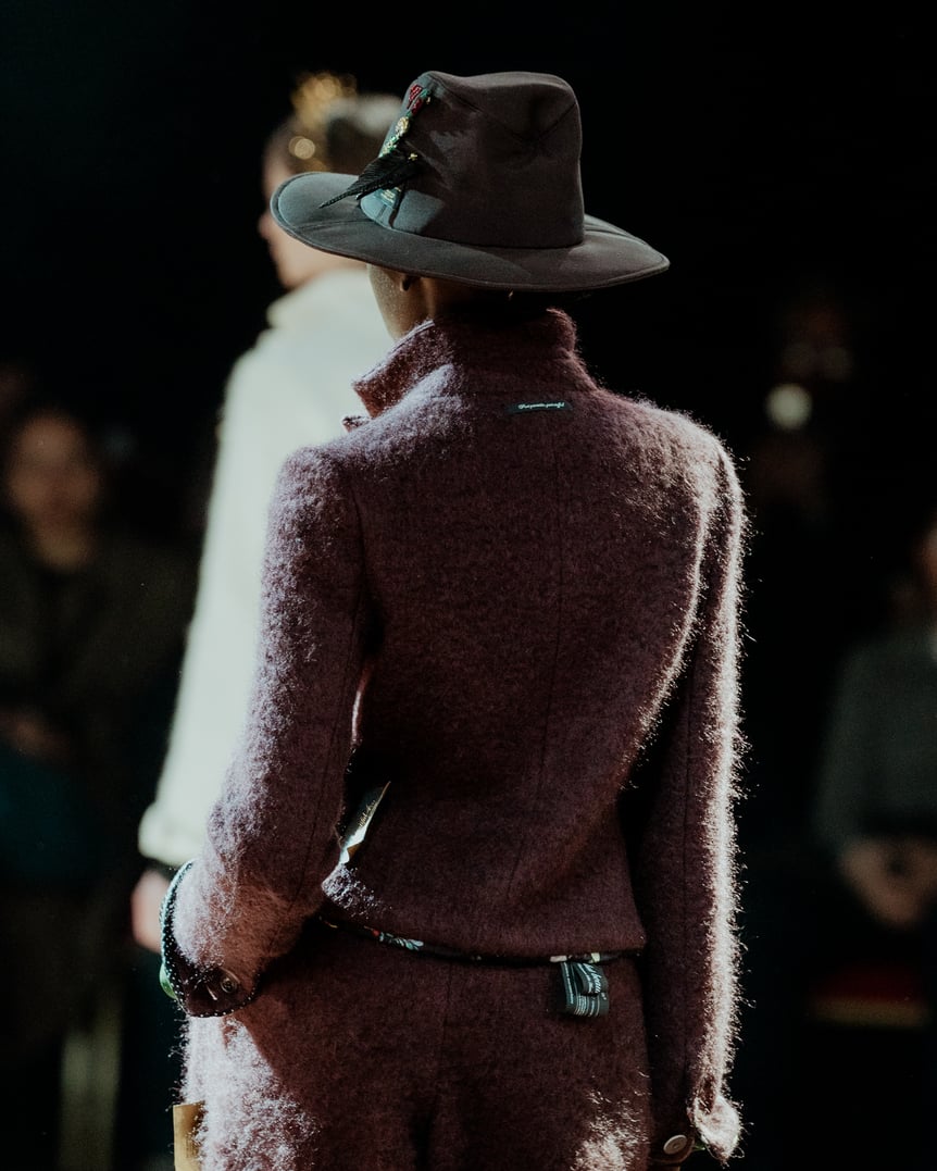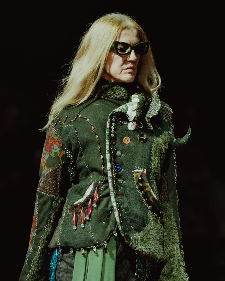 これまでにない試みとして、2004-05年秋冬のアーカイヴピースから3点が今回のショーで再登場。過去のルックを新作コレクションと同時に見せるという珍しい仕掛けだ。20年前のアイテムは時を経てもなお魅力を放ち、混沌としたランウェイで最新のクリエイションと混じり合っていた。グレイヘアのモデルも多く、唯一無二の個性をまとう服が自立した女性像とリンクする。