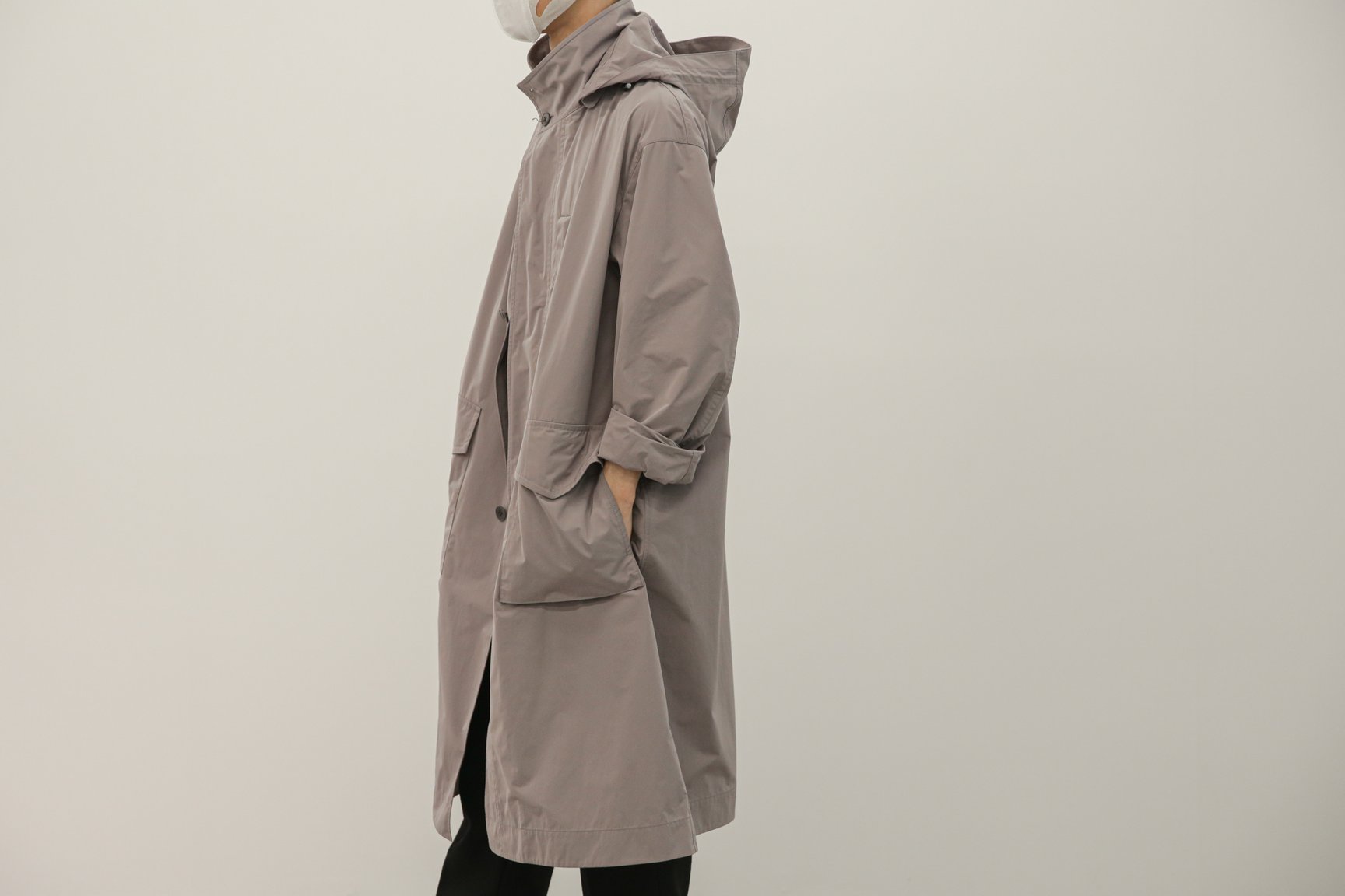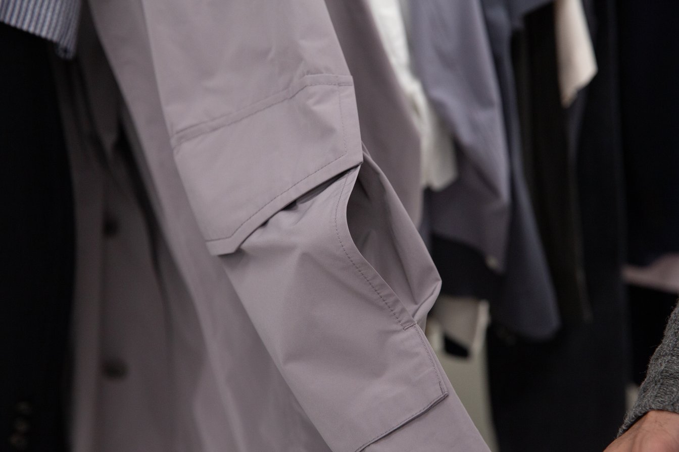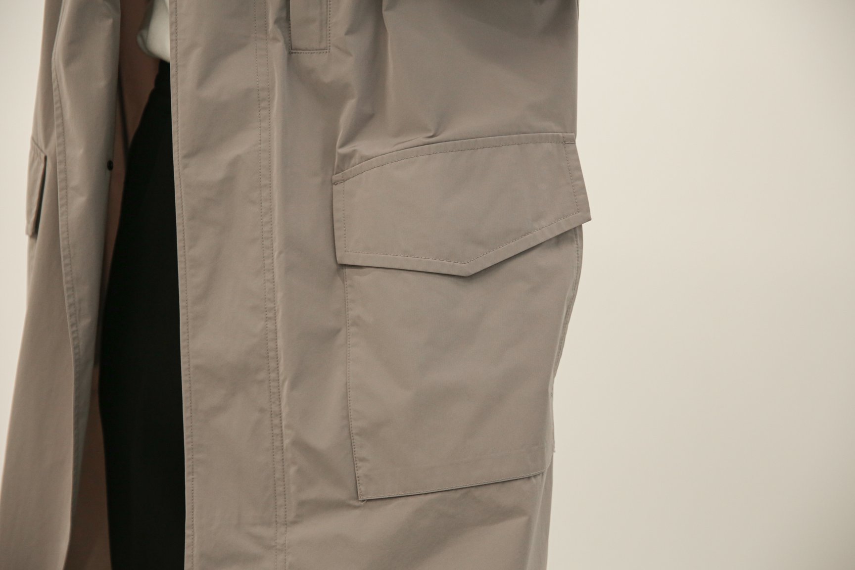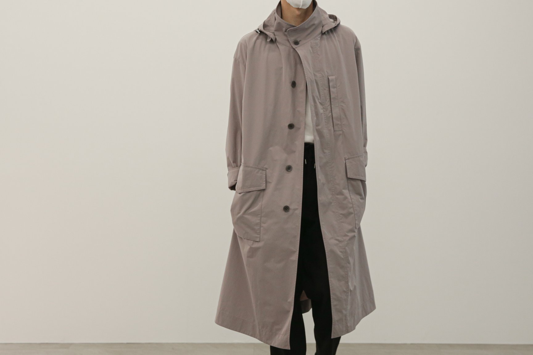 編集B:定番ですね。これは柔らかめなハリ感が特徴ですね。表面に撥水加工がされているので、レインコート的な位置付けとして着るのが正解なのかな。