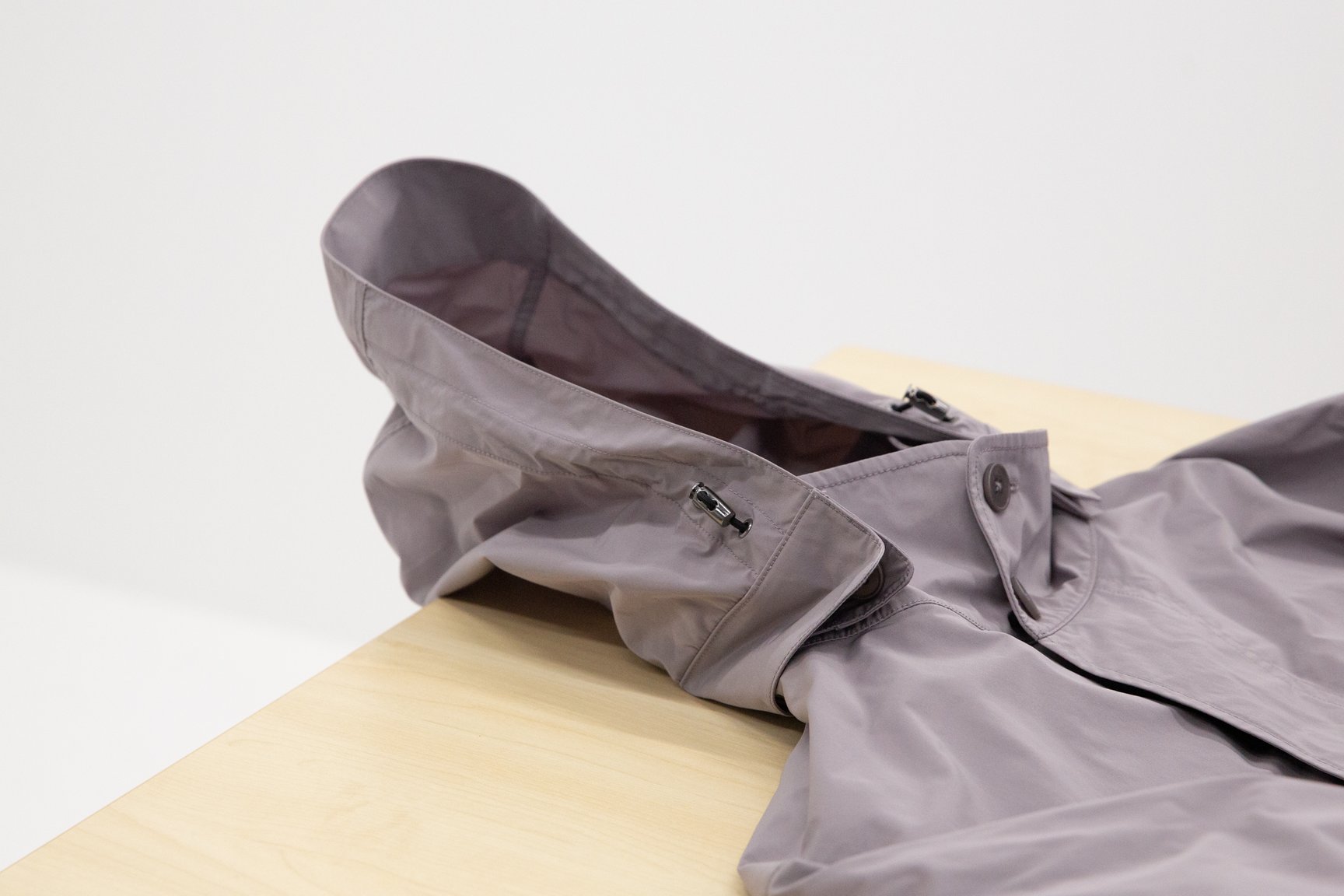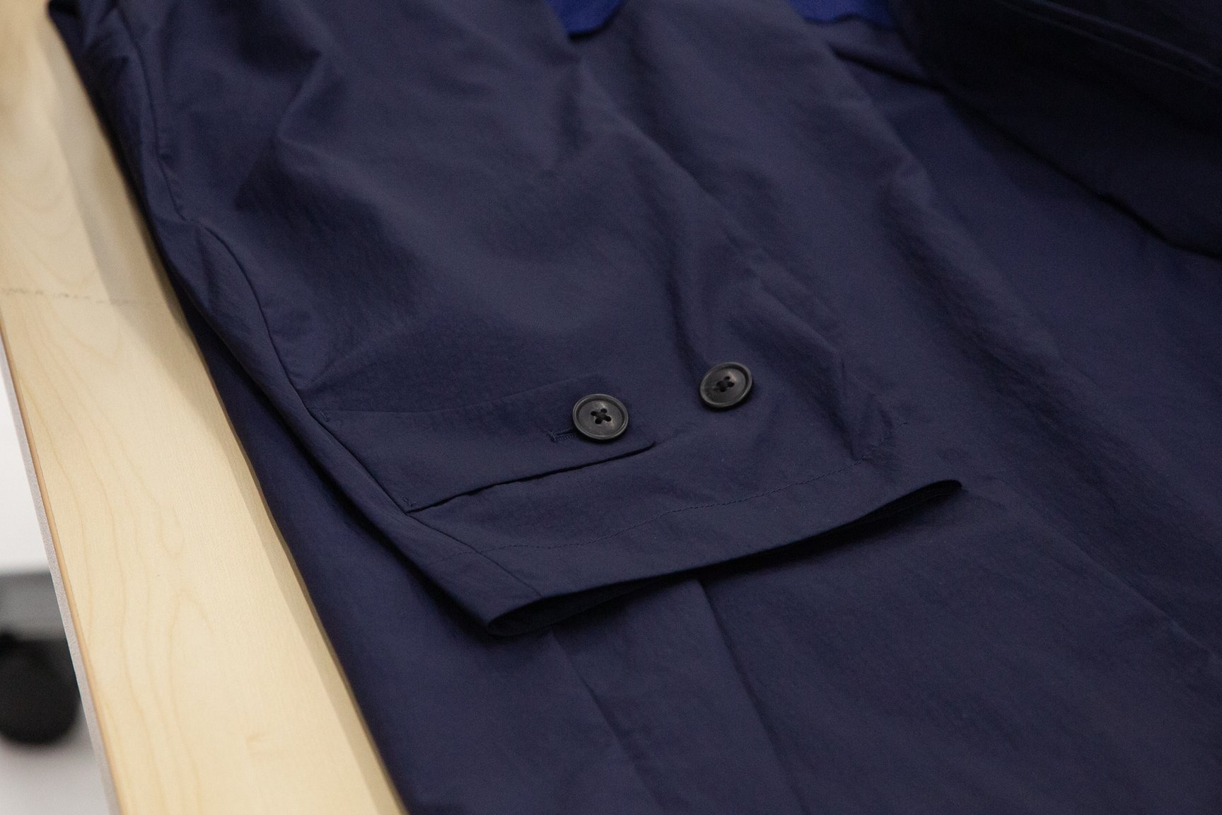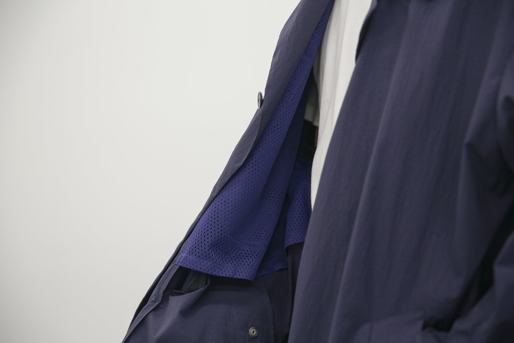 編集B:定番ですね。これは柔らかめなハリ感が特徴ですね。表面に撥水加工がされているので、レインコート的な位置付けとして着るのが正解なのかな。