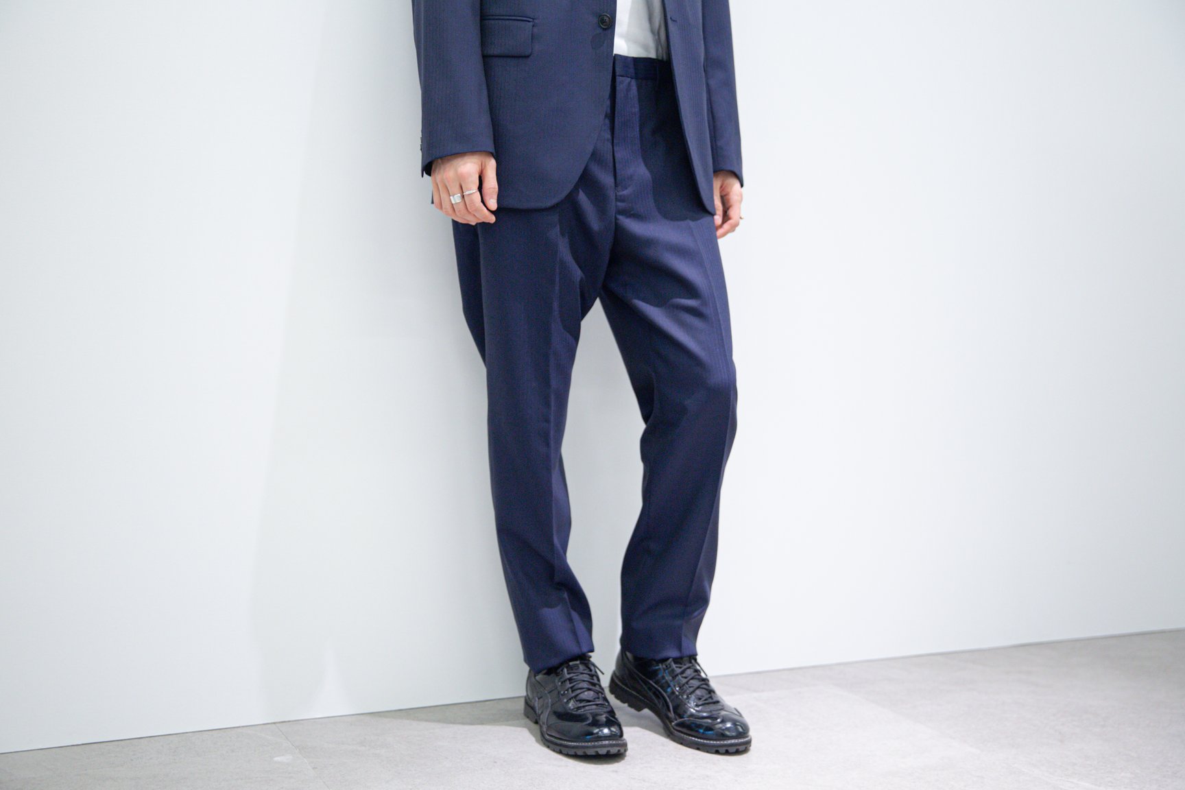 編集A:ジャケットが1万7900、パンツが9990なんですが、改めて価格への企業努力を感じます。縫製のクオリティもかなり高いですし。ちなみにカラー展開はこのネイビーのほかに、ダークグレーとブラックの3色。素材はネイビーはメリノSuper100sで、ダークグレーとブラックはメリノウールにニッケ社の特殊加工を加えているらしいです。他の色の素材感も気になります。