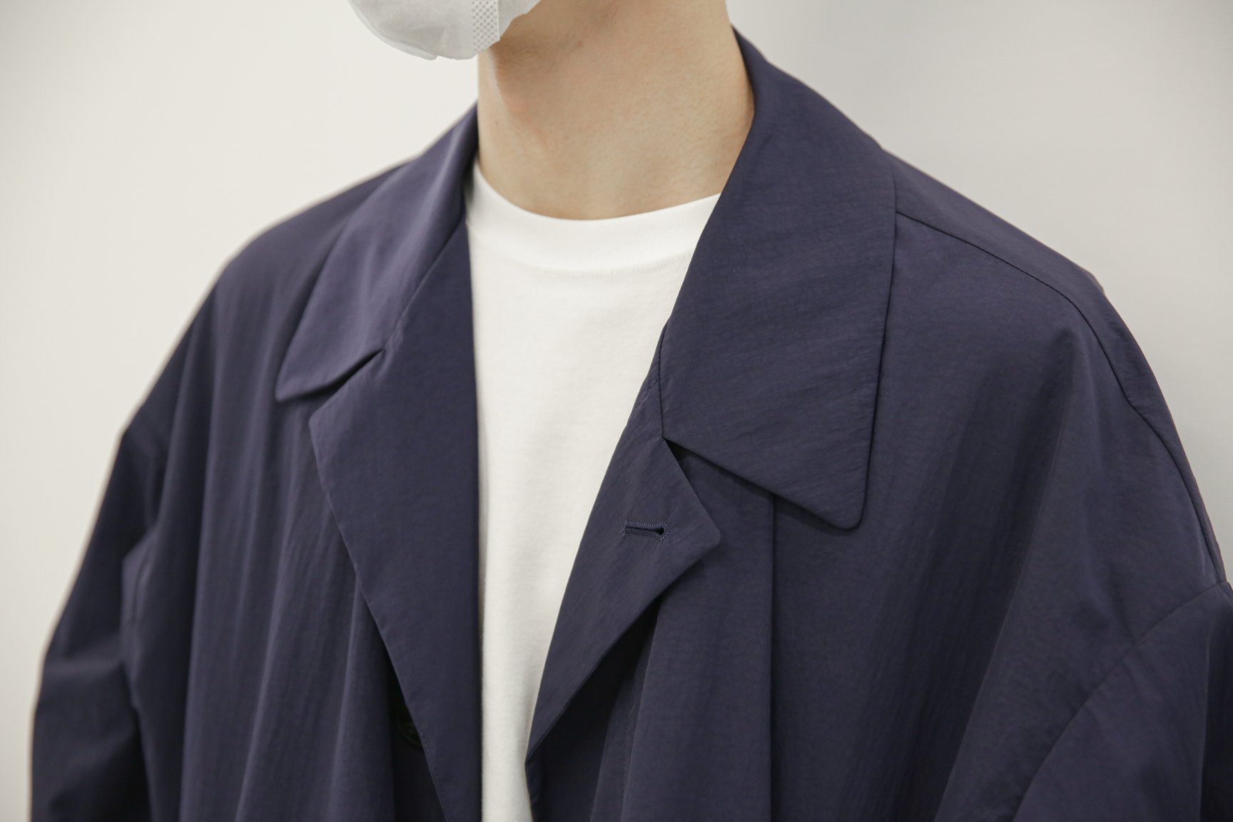 編集A:サイズ感としてはネーミングの通りオーバーサイズで、シルエットはボックス。先ほどのロングコートより今っぽいシルエットに仕上がっています。