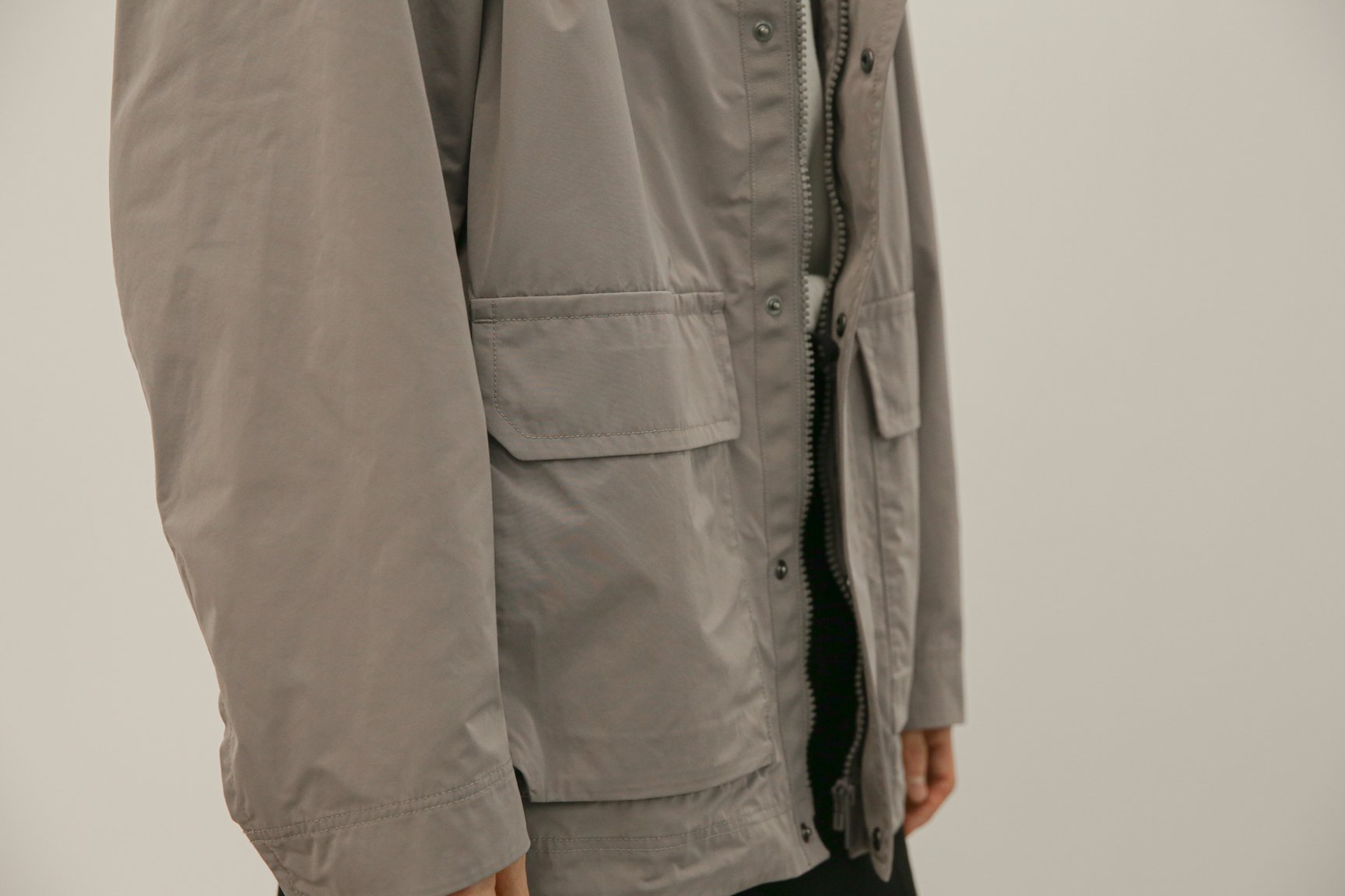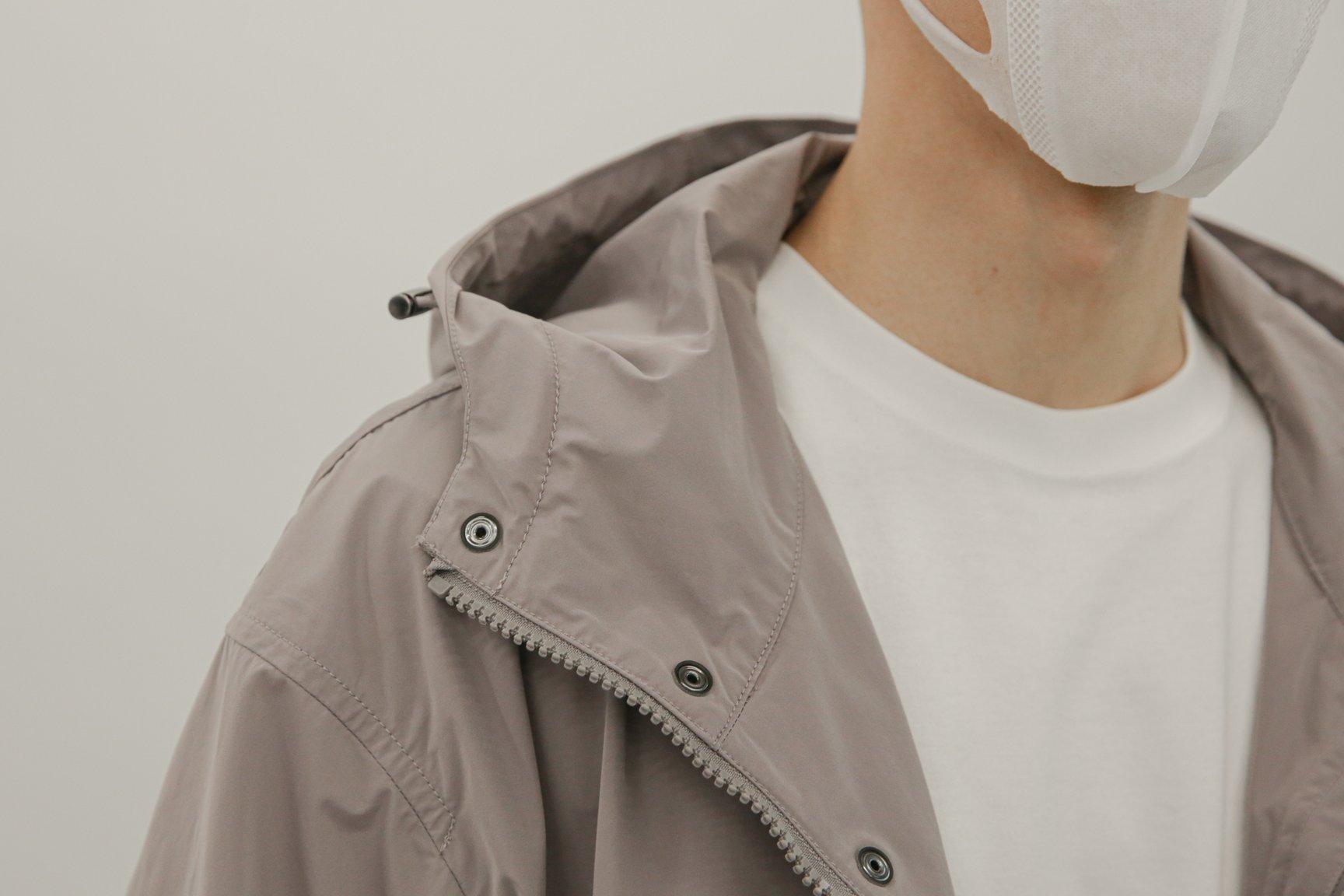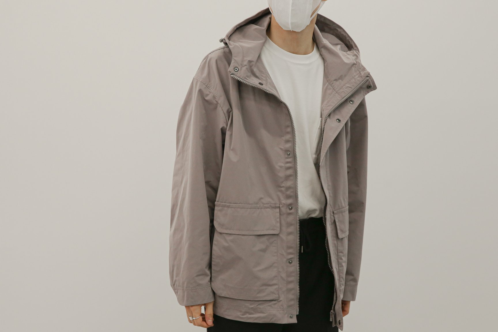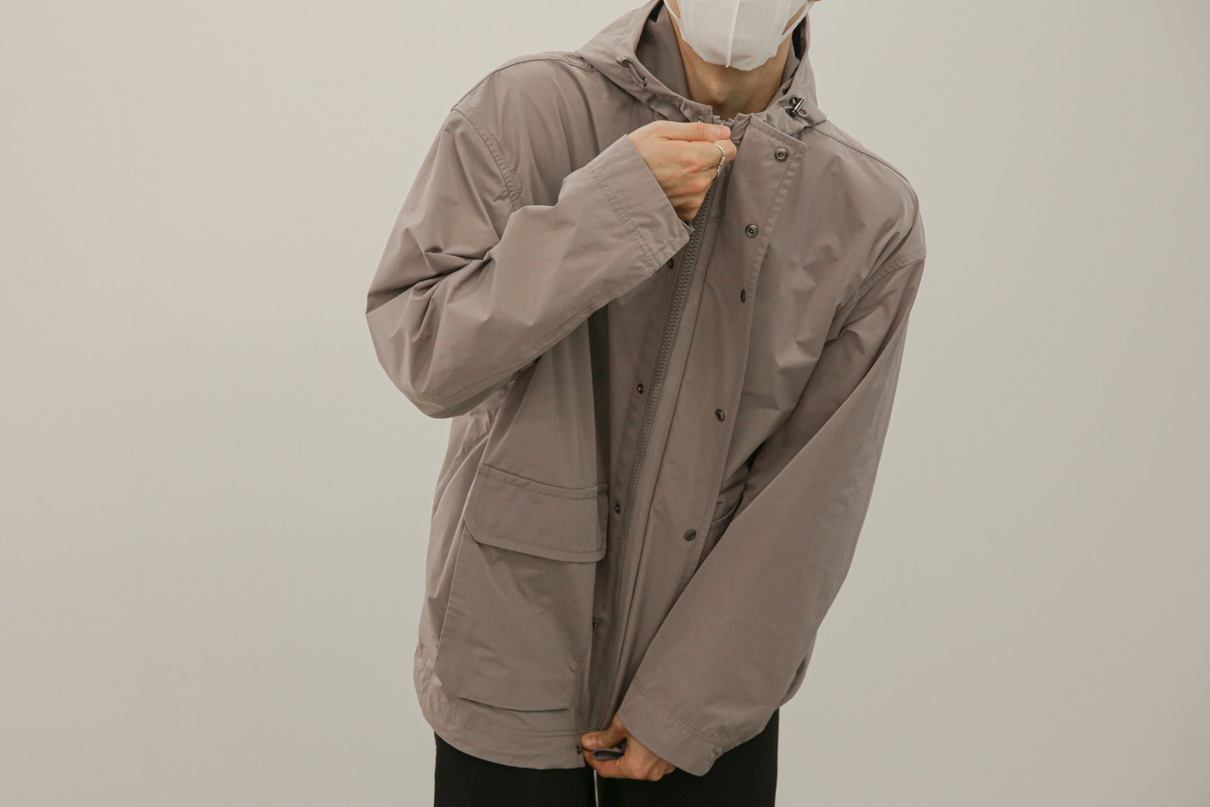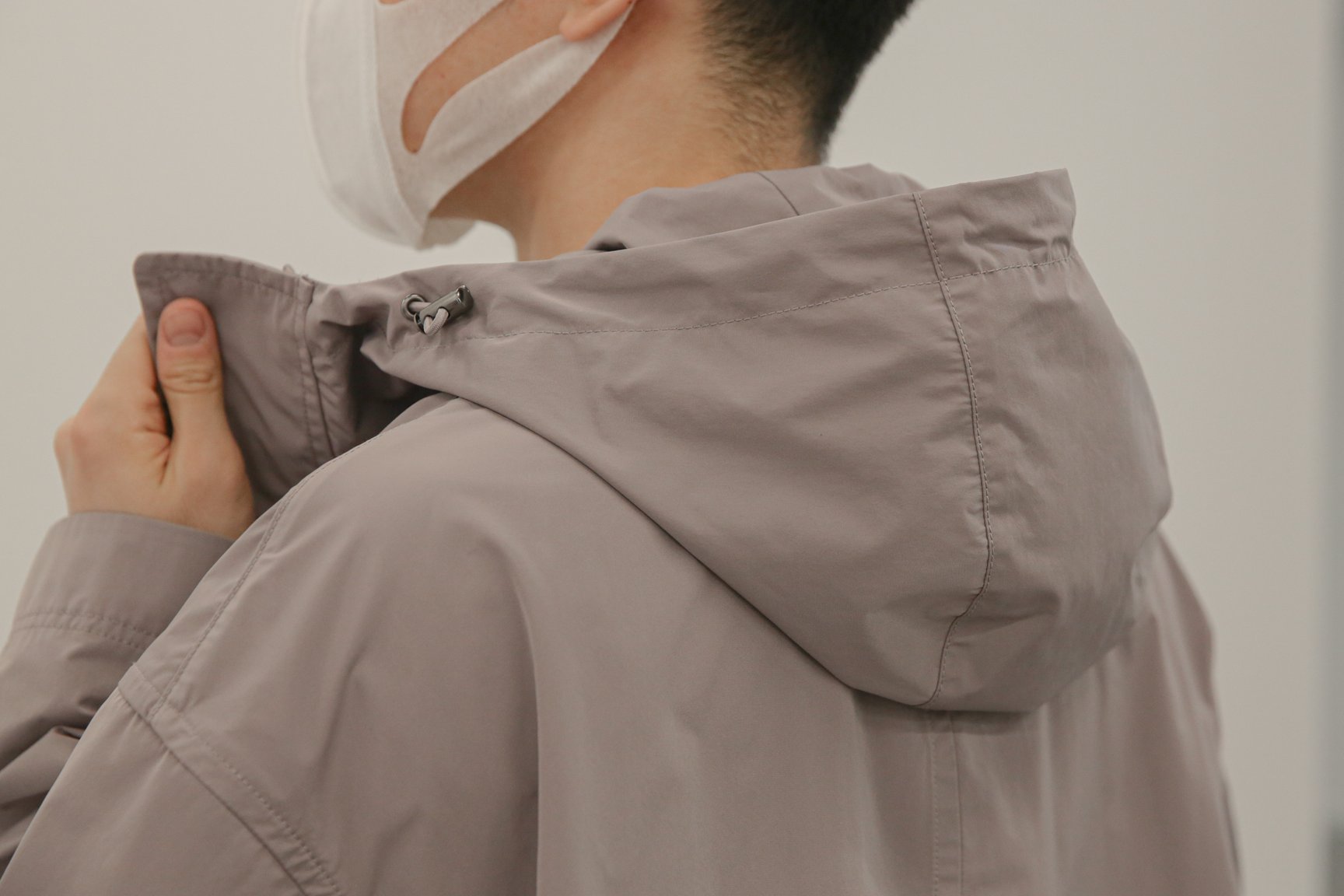 編集A:続いて先ほどと同じ素材、同じカラーのオーバーサイズマウンテンパーカ。これもレインウェアとして使えそうですね。