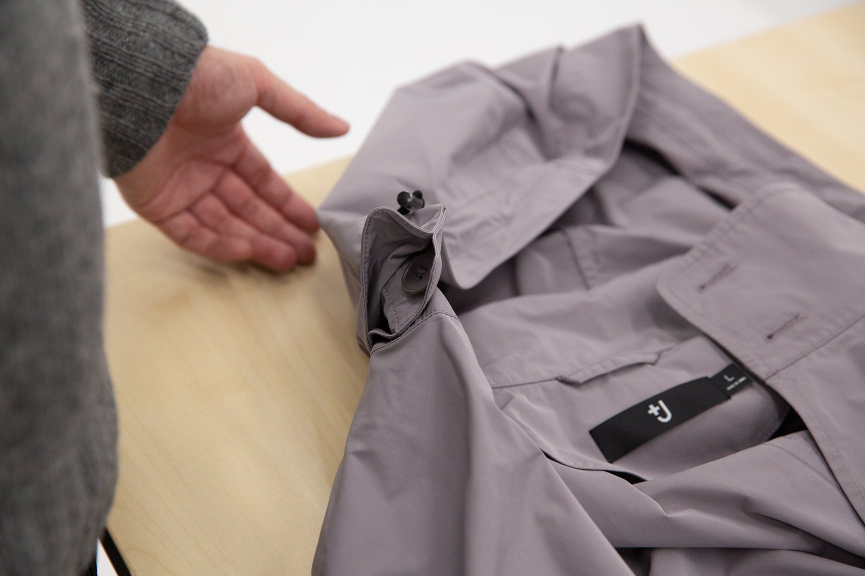 編集A:細かいポイントだとジップに「+J」のロゴ。あとはフードが取り外し可能になっていますね。