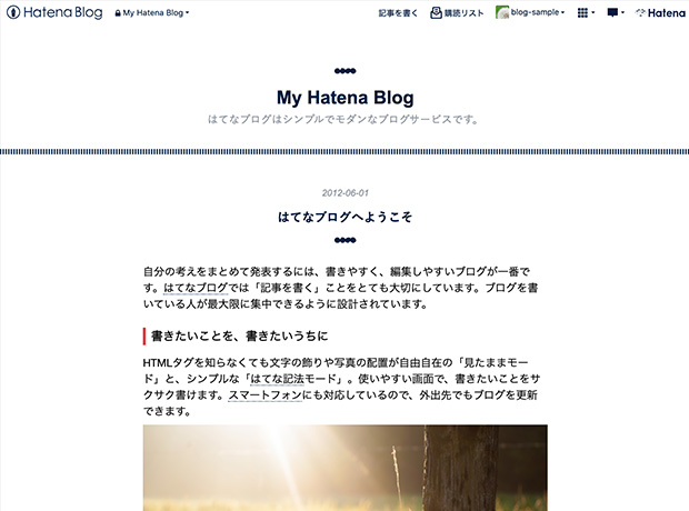 「Navy Blue」は、どんな食卓や料理の写真も映える、シンプルな北欧食器のようなテーマです。箇条書きのレシピや献立、短い文章も見やすいように、1カラムのデザインを採用しました。