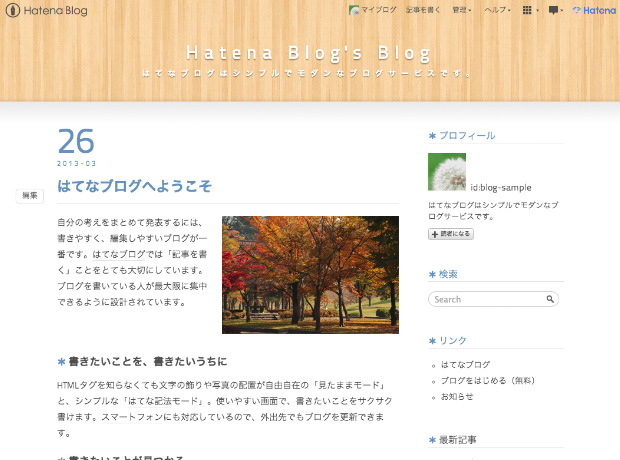 木材をイメージしたあたたかみのあるヘッダーが特徴的なテーマです。ゆったりとした印象を演出するため、日常の記録から読書の記録に適しています。