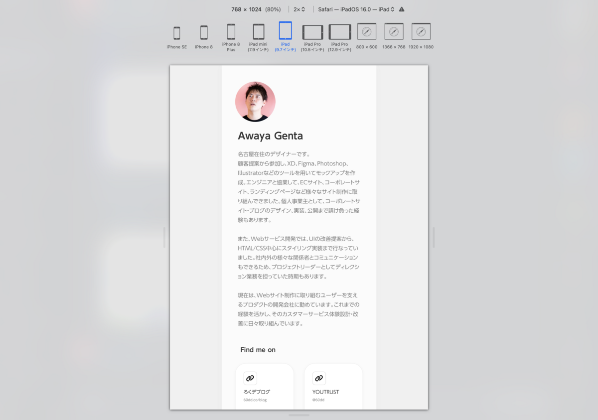 「自分の場合はどうするだろう」と、STUDIOの練習も兼ねて今回ポートフォリオのデザインに取り入れてみました。