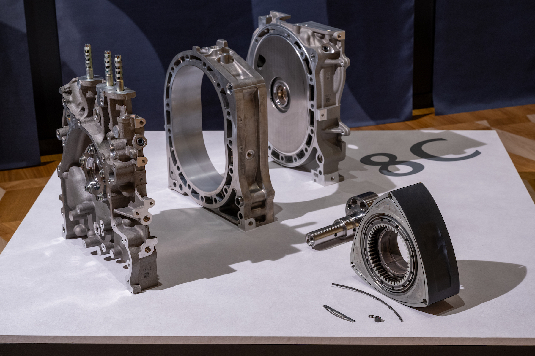 8Cの開発に携わったエンジニア曰く、物理的にはロータリーが発電だけでなく駆動も担う“直結”も可能とのこと。さらに、コンパクトさを活かしエンジンの縦置きすら“技術的”にはできるという。筆者にはエンジニアの目がキラキラと輝いているように見えた。現実問題はさておき夢は広がる一方である。