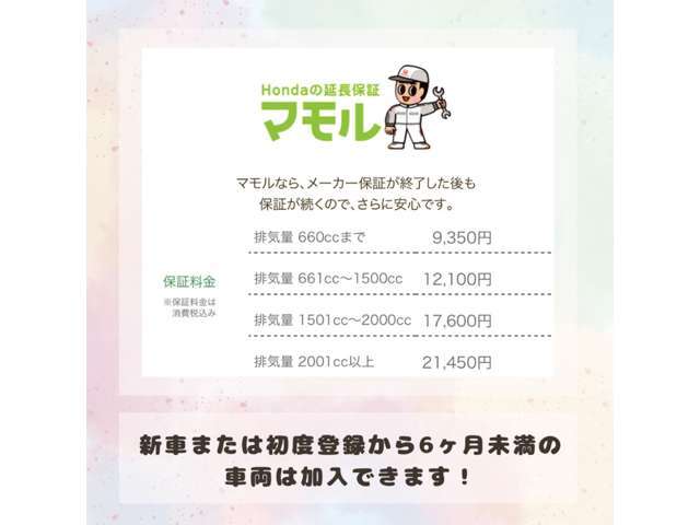 法定整備 | 法定整備付 法定12ヶ月点検付※貨物など一部車両は6ヶ月点検 |