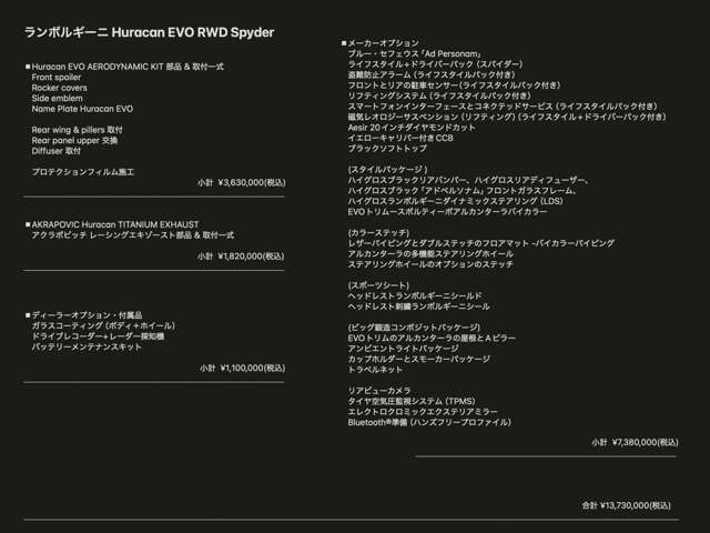 購入プラン内容(ランボルギーニ ウラカンスパイダー EVO RWD (LDF) オプション1354万/エアロダイナミックKIT()