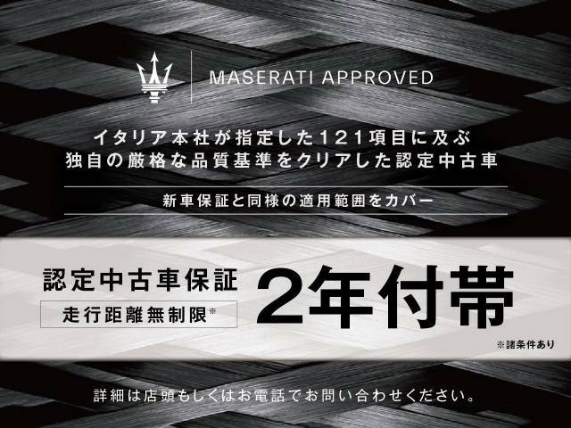 保証 | 保証付 詳細については、販売店にご確認ください。 保証期間:2年 保証距離:無制限 【マセラティCPO認定中古車】全国の正規マセラティディーラーにて使用できる保証を2年付帯。保証費用は車両本体価格に含まれていますので別途ご請求することはございません。 |