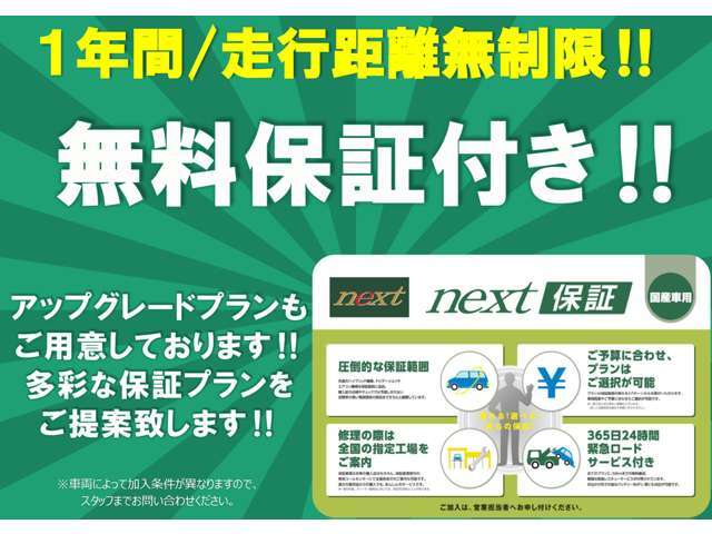 保証 | 保証付 詳細については、販売店にご確認ください。 保証期間:1年 保証距離:無制限 無料保証付き!!走行距離無制限!全国各地の指定工場等で修理可能&無料ロードサービス付きなので遠方の方でも安心!詳しくはスタッフまで!! |