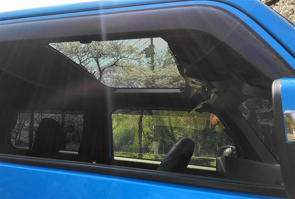 - 高速道路走行時の挙動が気になりましたが、市街地は運転していて楽しかったです。デザインはジムニーとハスラーの中間て感じで、いいところをついてます。スカイルーフありきの車だと感じました。