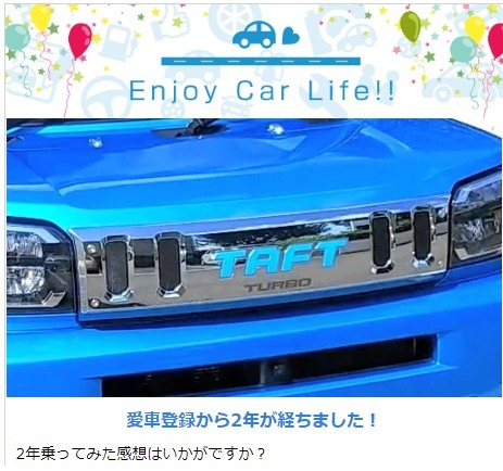 - ハスラーからの乗り換えですが、思ったとおり自分にはタフトが合っていると思いました。 基本1人乗りなので、このコクピット感があるインパネと音が良いサウンドシステムでドライブが楽しくなりそうです。 今回は...