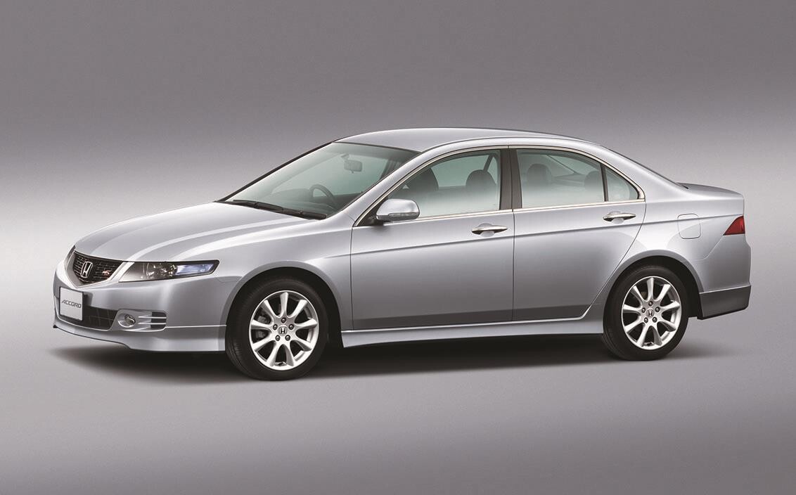7代目となる現行アコードは2002年10月に登場した。初代モデルから継承されてきた「人と社会との調和」という理念のもと、「ニュー・クオリティ・ツアラー」をコンセプトに開発された。細部までこだわった上質な内外装、高い安全・環境性能を持つミッドサイズセダンのベンチマークとして開発されたものだ。セダンとして世界トップレベルの空力性能を誇り、軽量・高剛性ボディの採用により走行性能や乗り心地を大きく向上させている。2005年11月にはマイナーチェンジが行われ、新デザインのフロントグリルや前後バンパーなどによってより上質感と躍動感を感じさせるデザインとした。インテリアもメーター、ステアリングホイール、ATレバーなどが新しくなった。リアシートは大きな荷物にも対応できる、6:4分割可倒式だ。エンジンは2リッターと2.4リッターのいずれもDOHC i-VTEC。組み合わされるのは電子制御5速ATで、Sマチックと相まってマニュアル感覚の変速操作で走りを楽しむことも可能だ。このほか、走行性能をさらに磨いたユーロRも設定された。強化された足回りや、専用となる高出力の2リッターDOHC i-VTECエンジンと6速MTの組み合わせなどにより、よりスポーティな走りが可能だ。2005年11月のマイナーチェンジでは2.4リッターDOHC i-VTECエンジンと5速ATを組み合わせたタイプSを設定し、スポーツ志向の強い専用の仕様を用意するなど、バリエーションの変更も行った。