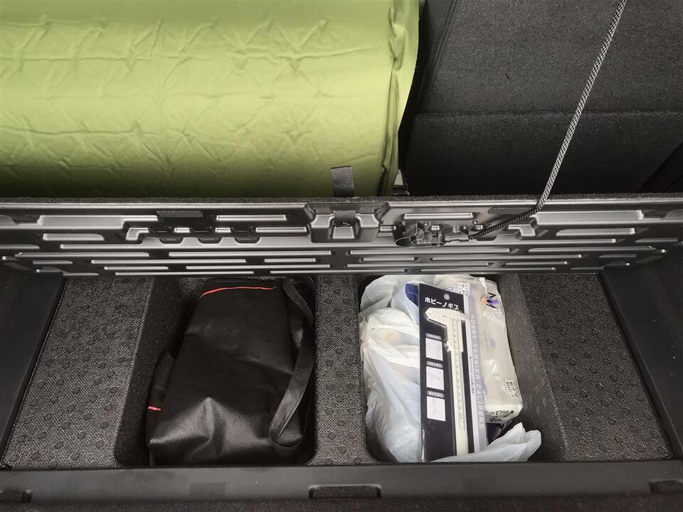 荷室の床下収納が多く普段あまり使わない物とかを収納できる。ガソリン車にはハイブリッドバッテリーが無いので、その部分が収納スペースになっている。