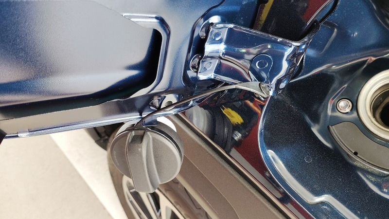 給油キャップが紐で繋がれている形ですが、長さがギリギリで蓋の裏に引っ掛けるのに手間取ります。
