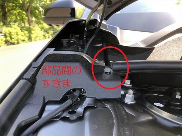 ノイズ対策の甘さは例えばフードを開けてカウル部の遮音構造にも現われている。カウルルーバーのウェザーストリップ(W/S)と両サイドのW/Sの間が明らかにシール切れしていた。例えば先日試乗した日産オーラはカウルの部分はこれでもかとウレタンで隙間を埋めていたのだが。