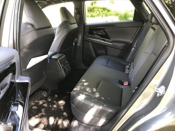 前席に座っている限りは、それこそRAV4と変わらないが、後席は大きく違う。ロングホイールベースを活かしてレッグスペースは広いものの、足を大きく前に投げ出すような着座姿勢となる。その分少しシートバックも寝ており、SUVで有りながら妙にセダン的なパッケージングである。これは床下にバッテリーを積んだしわ寄せがキャビンに及んだ結果だろう。床が高くなって体育座りの様になってしまうので足を前に出させるしか無いのだ。