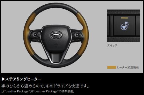 シートヒーターとステアリングヒーターを付けたかったがレザーパッケージ30に躊躇してしまいあきらめた。メーカーとしての戦略があるかもしれないが、合皮シートでも付けられる設定が欲しかった。