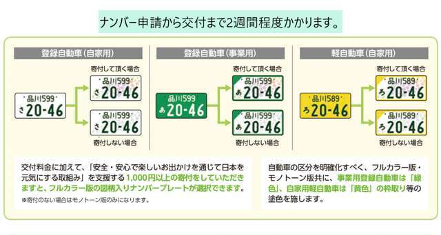 ※販売店の所在する所轄運輸支局以外で登録する際や、車の定置場所、登録月によって、手数料や税金の額が異なる場合があります。詳しくは販売店にお問合せください