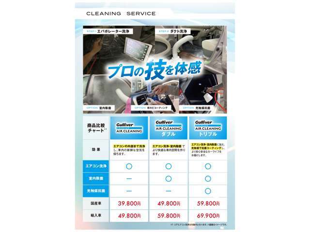 補足 | - | 【ガリバーケアパック】安心して乗っていただくために、Gulliverからお得なパック商品のご案内です。 法定点検ではカバーできない最大77項目の点検、および新品部品交換が最大24項目のお得な整備プランです。 |